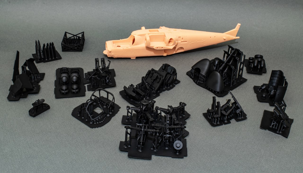 показаны фотографии тестовой печати модели Ка-52 в 48 масштабе.