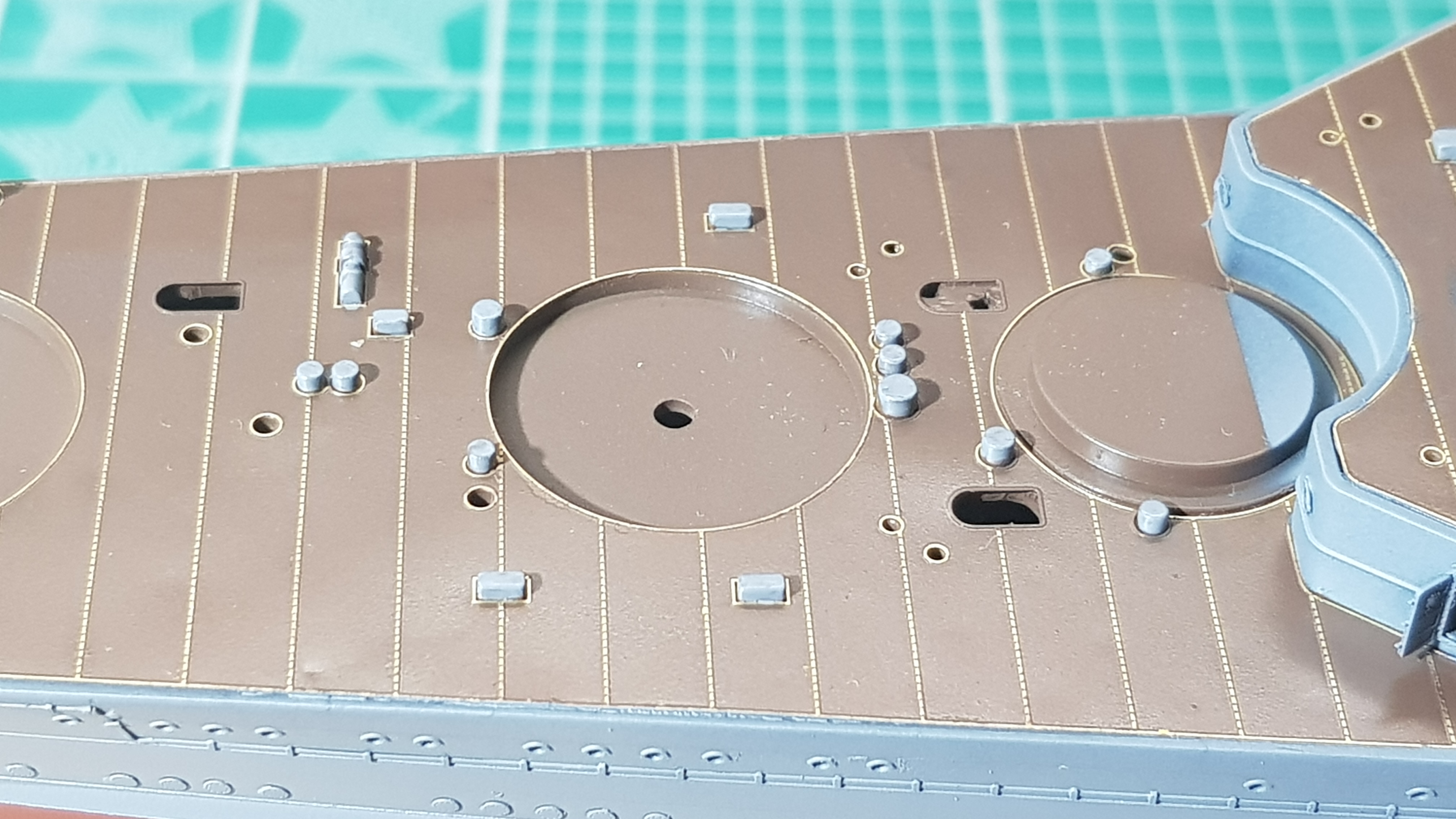 В общем готовлюсь к отделке палуб. Носовой полностью, центральной по мелочам. На центральной еще ж Иерихонская ТРУБА! )))
