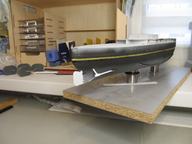 Прошу Коллег обратить внимание, что на модели установлены ограничители угла поворота пера руля. На прототипе они не давали перу заваливаться более чем на 35 градусов на каждый борт. Не уверен, что мне удалось точно выверить эти самые 35 градусов, но я постарался сделать что-то похожее.