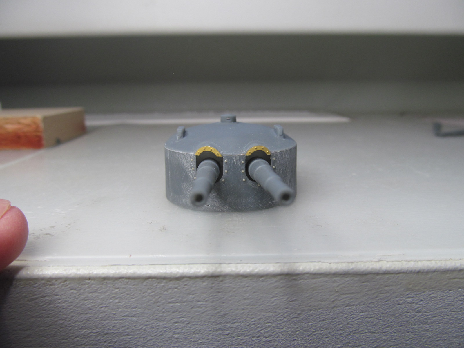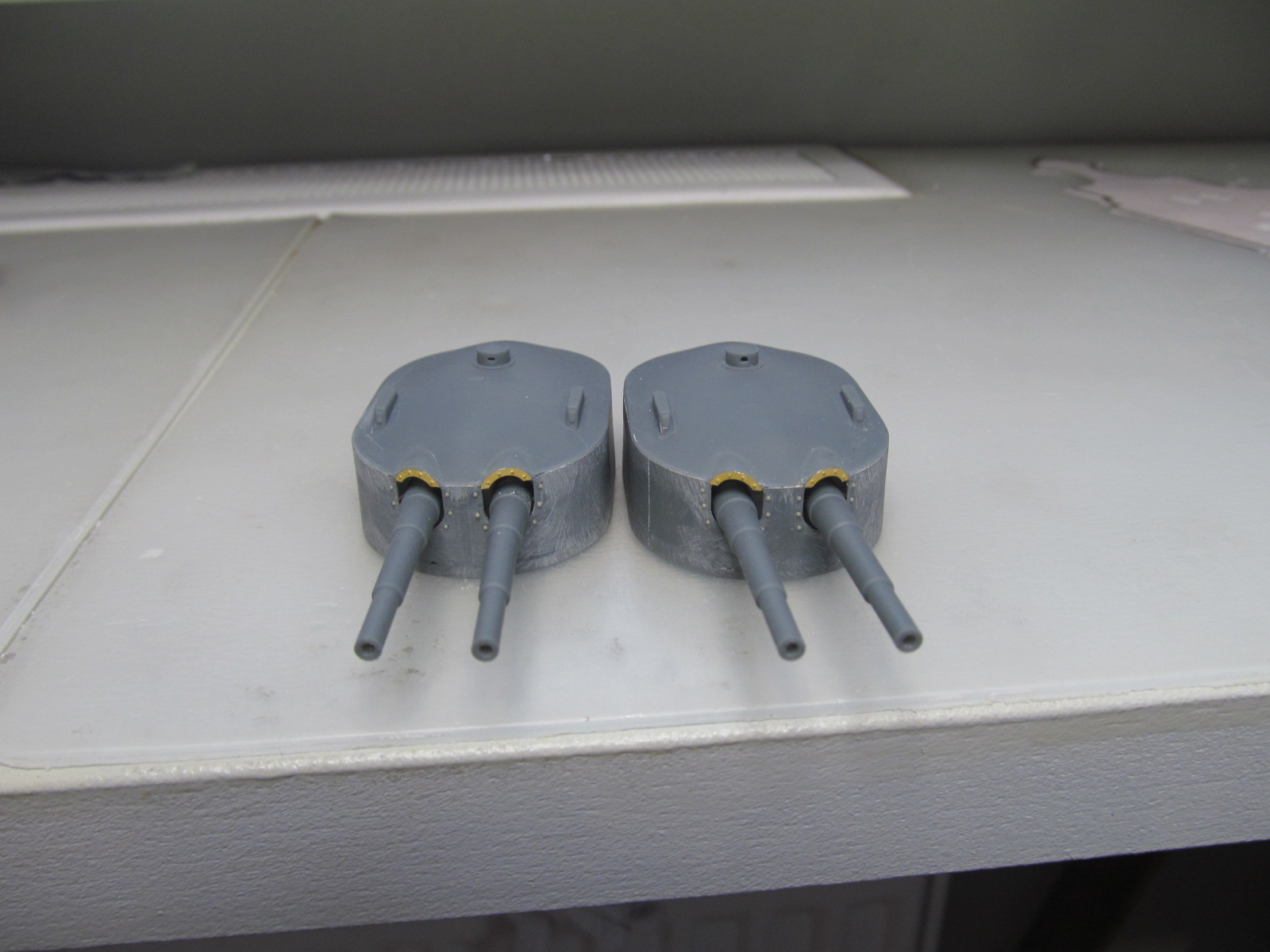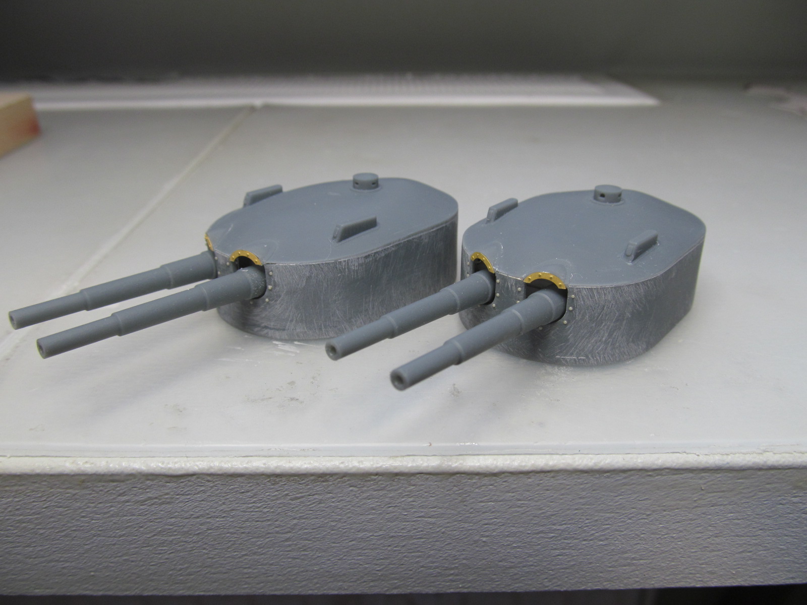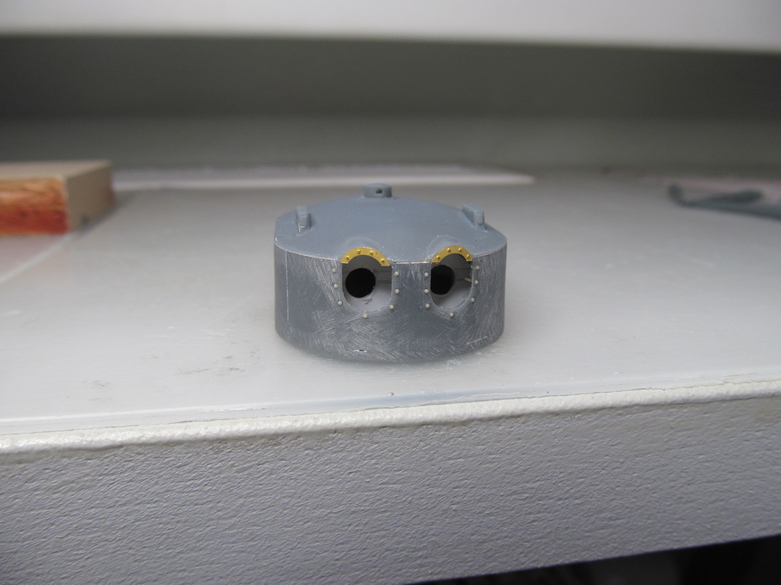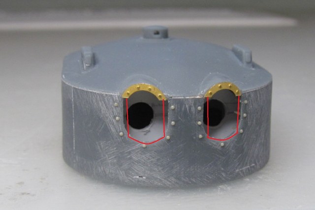Когда заказывал фототравление на модель я, старый дурак, недостаточно изучил матчасть....... в результате чего заказал "классические" рамки обрамления на амбразуры башен главного калибра.