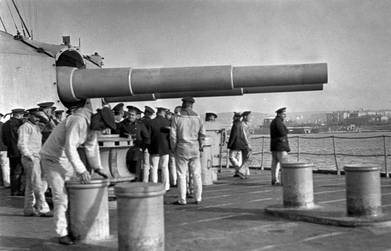 В известном журнале пишут, что "..С 21 марта 1912 это положение распространилось и на Черноморский флот ". То есть, черноморские корабли так же , должны быть после этого двух оттеночные. Тут кстати нужно заметить, что лично я пока больше не встречал документальных подтверждений о распространении №118 и на Черноморский флот. Но вот фотографии , этого НЕ подтверждают. Все черноморские линкоры после 1912 года однотонны. Я нашел лишь одну фото, где четко виден двухцветный "Евстафий" , вот она :