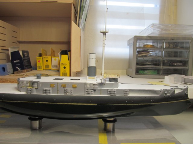 Осталось подвесить вьюшки под крылья мостика и установить сходные трапы на спардек. Но сегодня уже нет настроения......