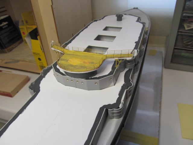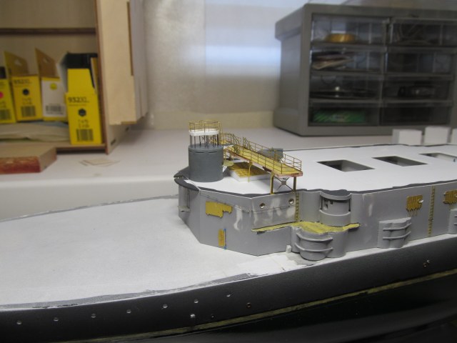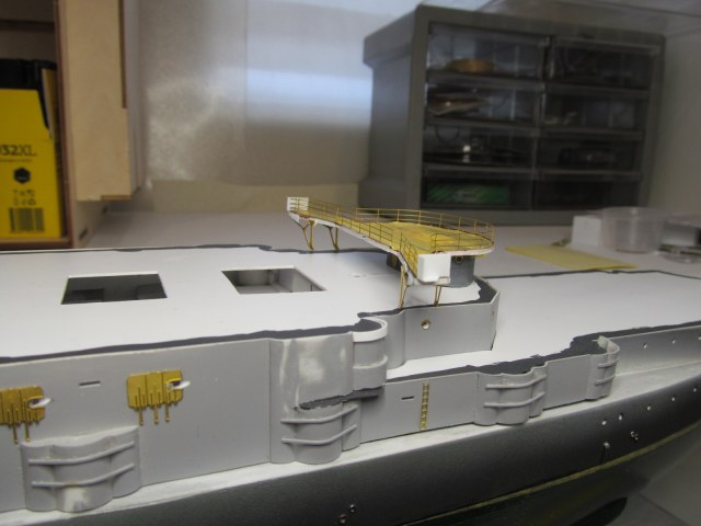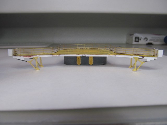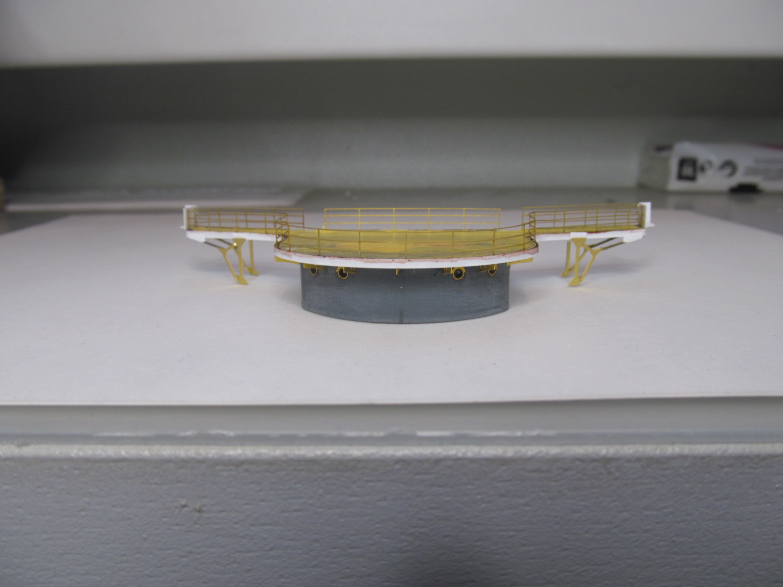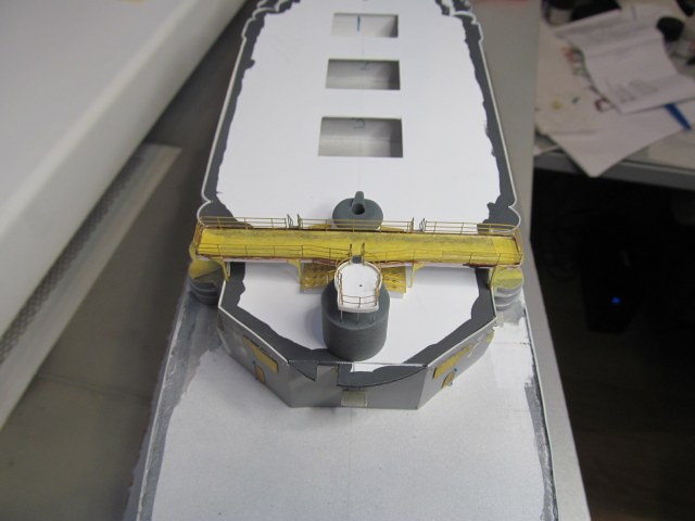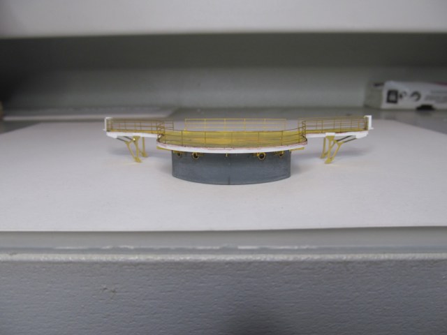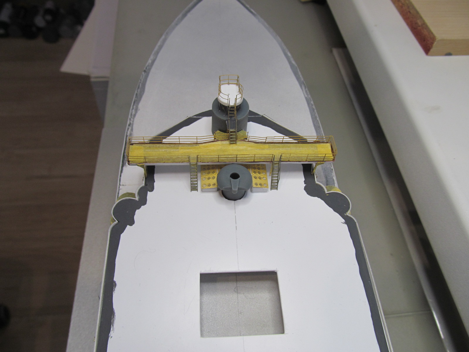 Трап на крышу визирной рубки, естественно, буду ставить после установки боевой рубки на палубу мостика.
