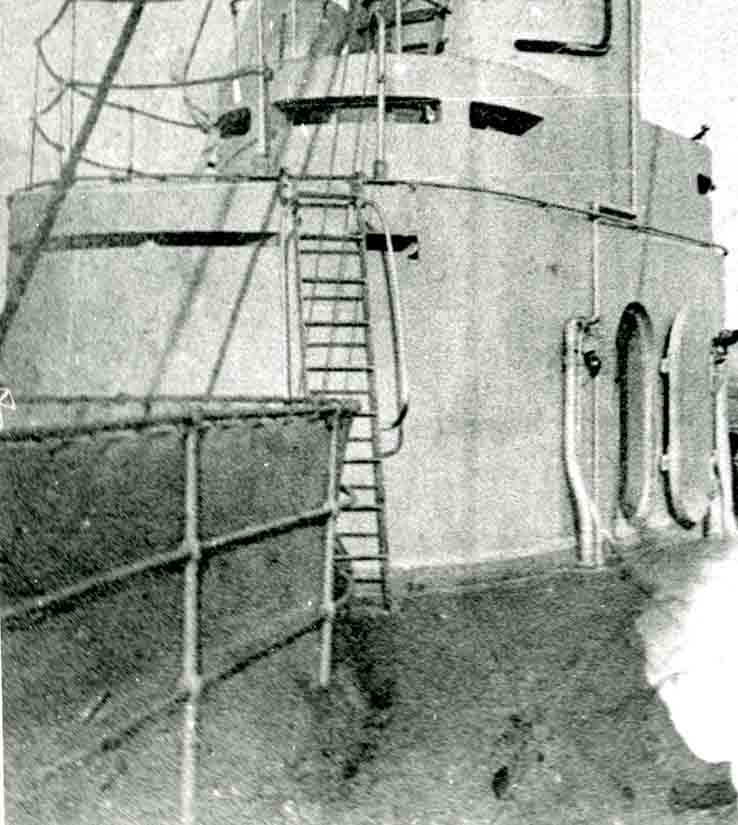 Есть предположение, что фотография сделана в небольшой, примерно двухлетний, период наличия штурманской рубки наверху боевой рубки, и ведёт этот трап как раз в штурманскую рубку.