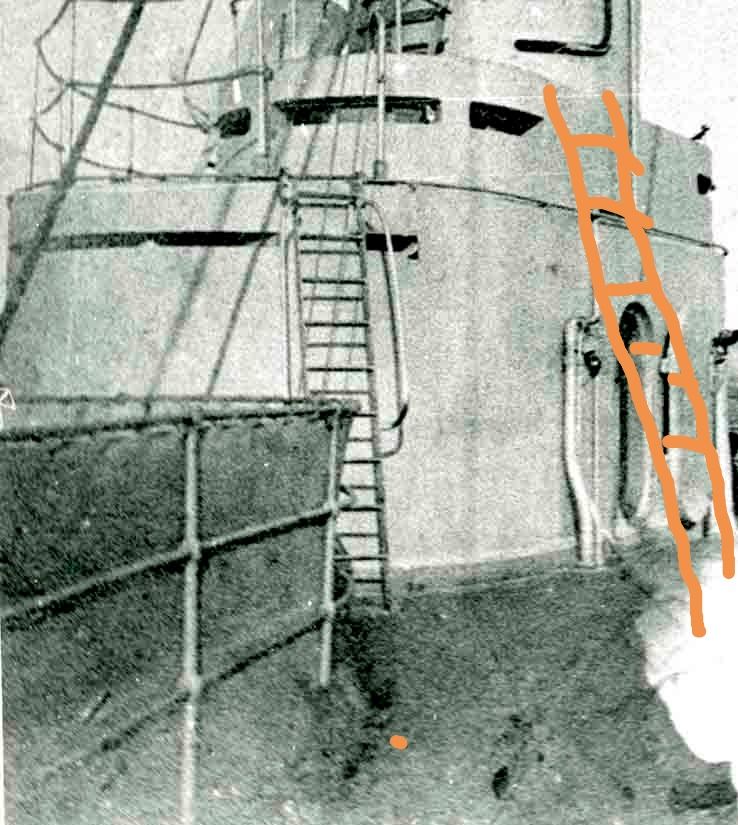 Не получается..... на фотографиях обоих кораблей того периода этот трап виден очень чётко.