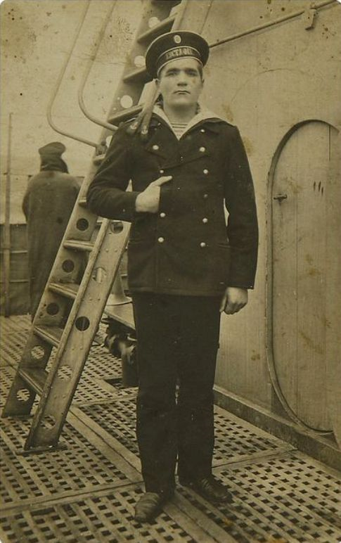 Прокачал я эту фото, с матросом. В интернетах пишут, что это 1917 год, а матрос, рулевой Евстафия.