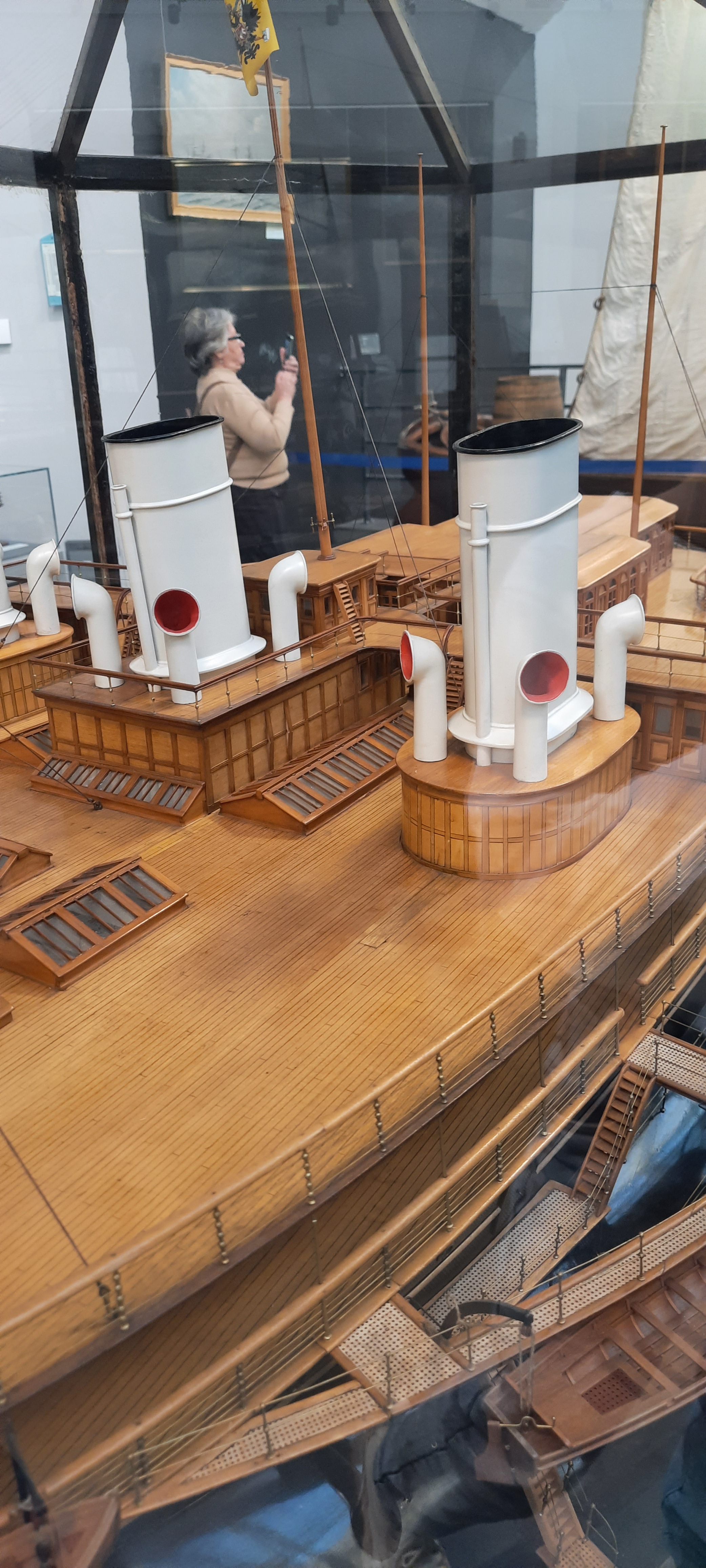 Тут ещё вопрос образовался. По мостик. А точно ли на мостиках был линолеум или сталь? На известной фото Евстафия, вид сверху, на носовом и кормовом мостиках, нмв чётко просматриваются квадратики-контуры рустерных решёток. Или есть нормальная фото, допустим не предназначенная к общему просмотру, где чётко видно, что решёток нет?