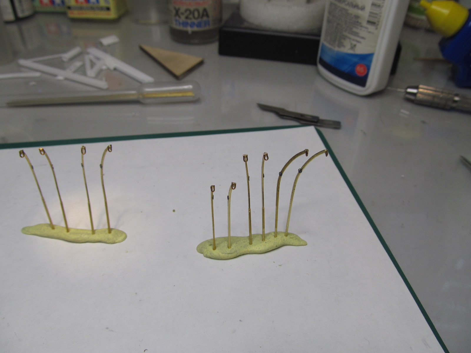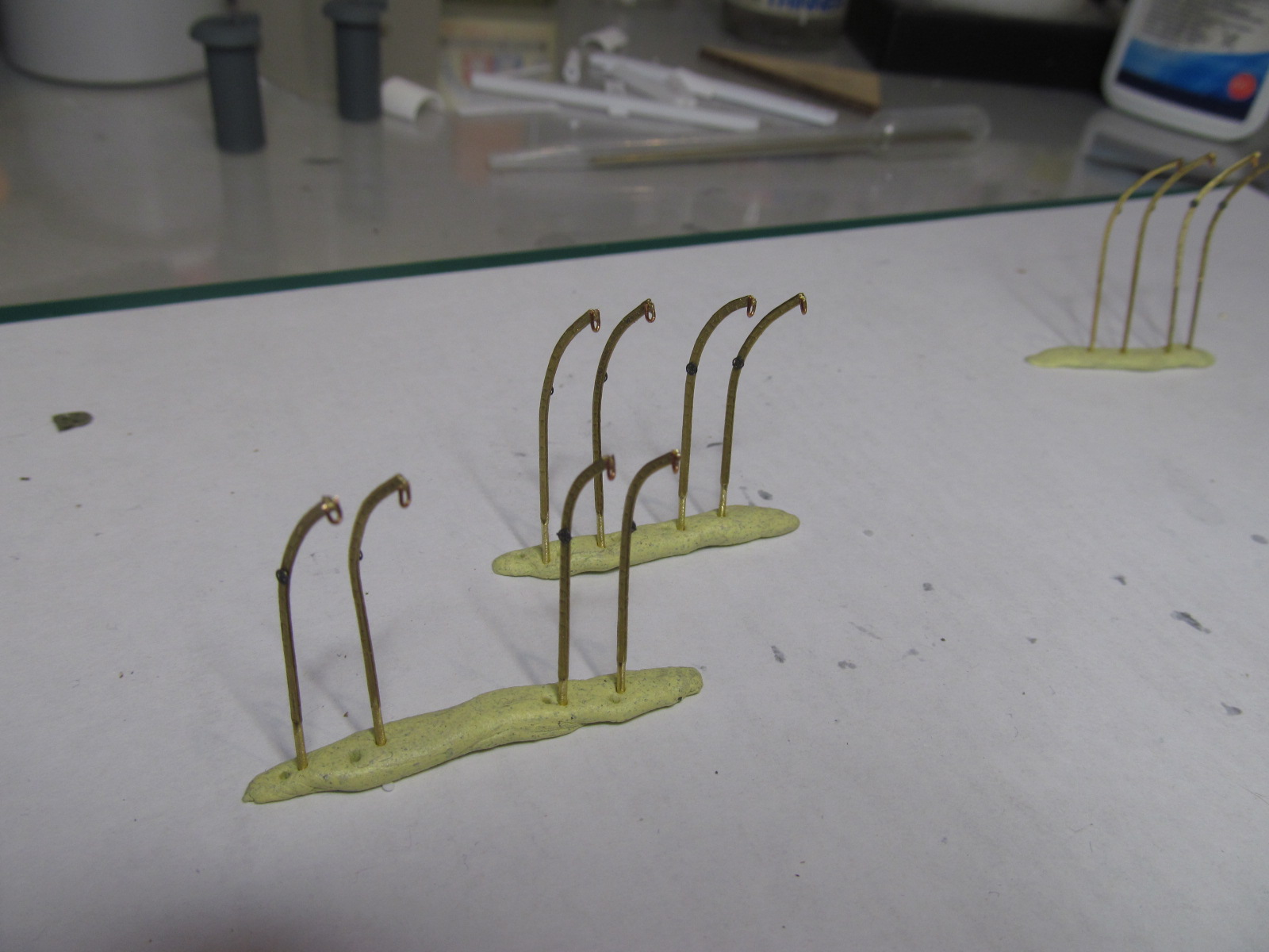 Приклеивать их пока что всё равно невозможно (палубы-то ещё у меня нету), а покрашу и пусть полежат до лучших времён.