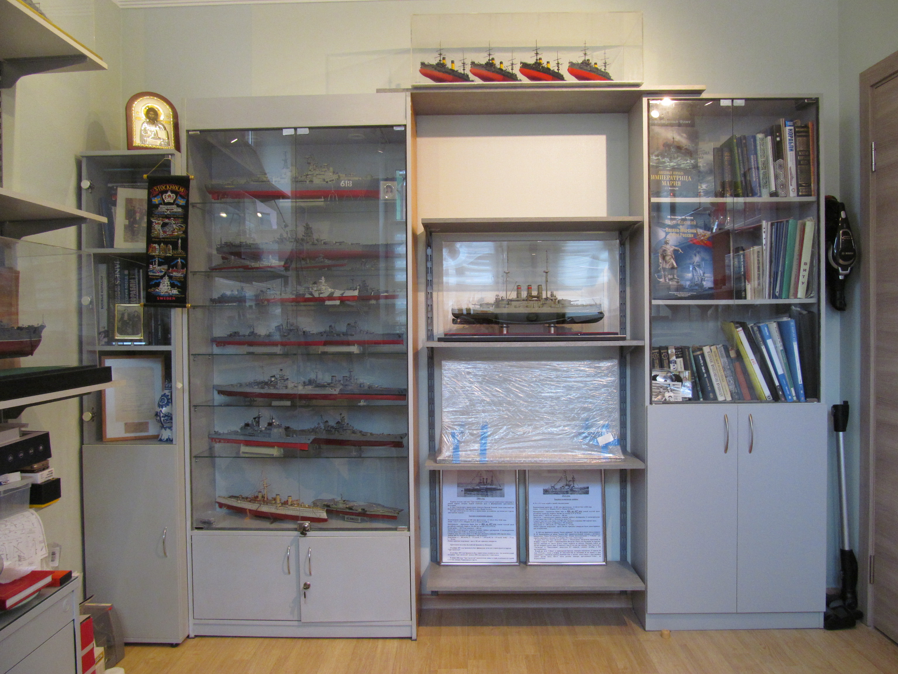 Пришлось разбирать один из шкафов, но перед этим уплотнить старые модели, которые шикарно свободно размещались в одном из шкафов, и на месте разобранного сооружать дополнительный стеллаж.