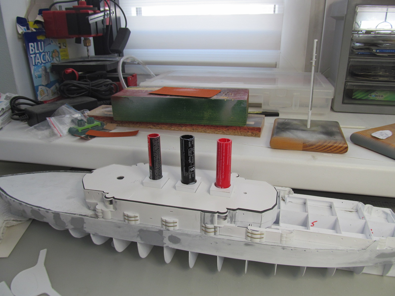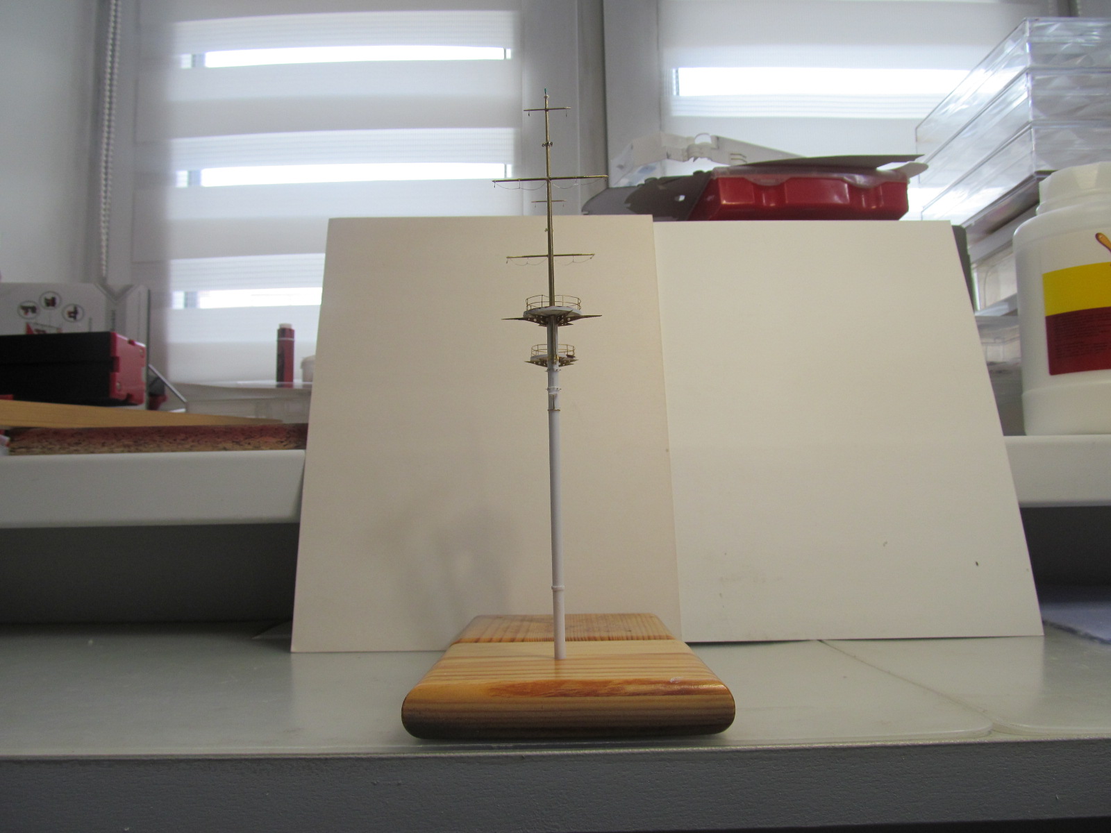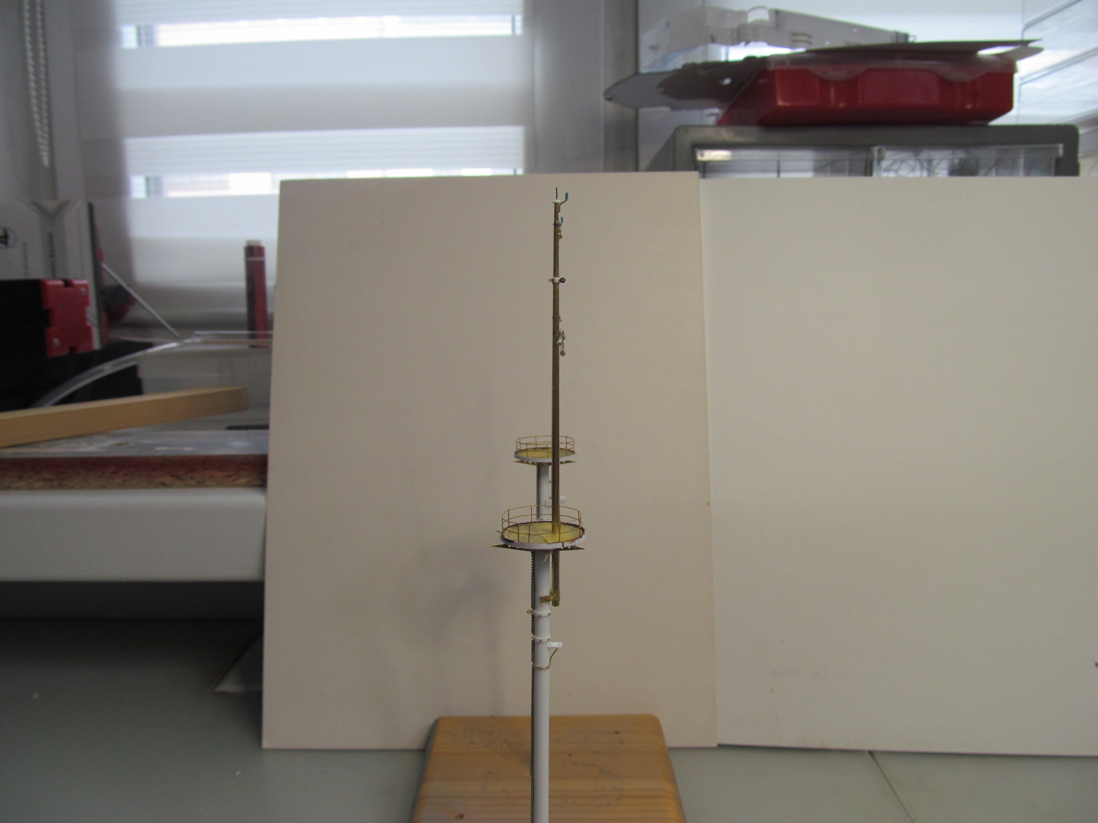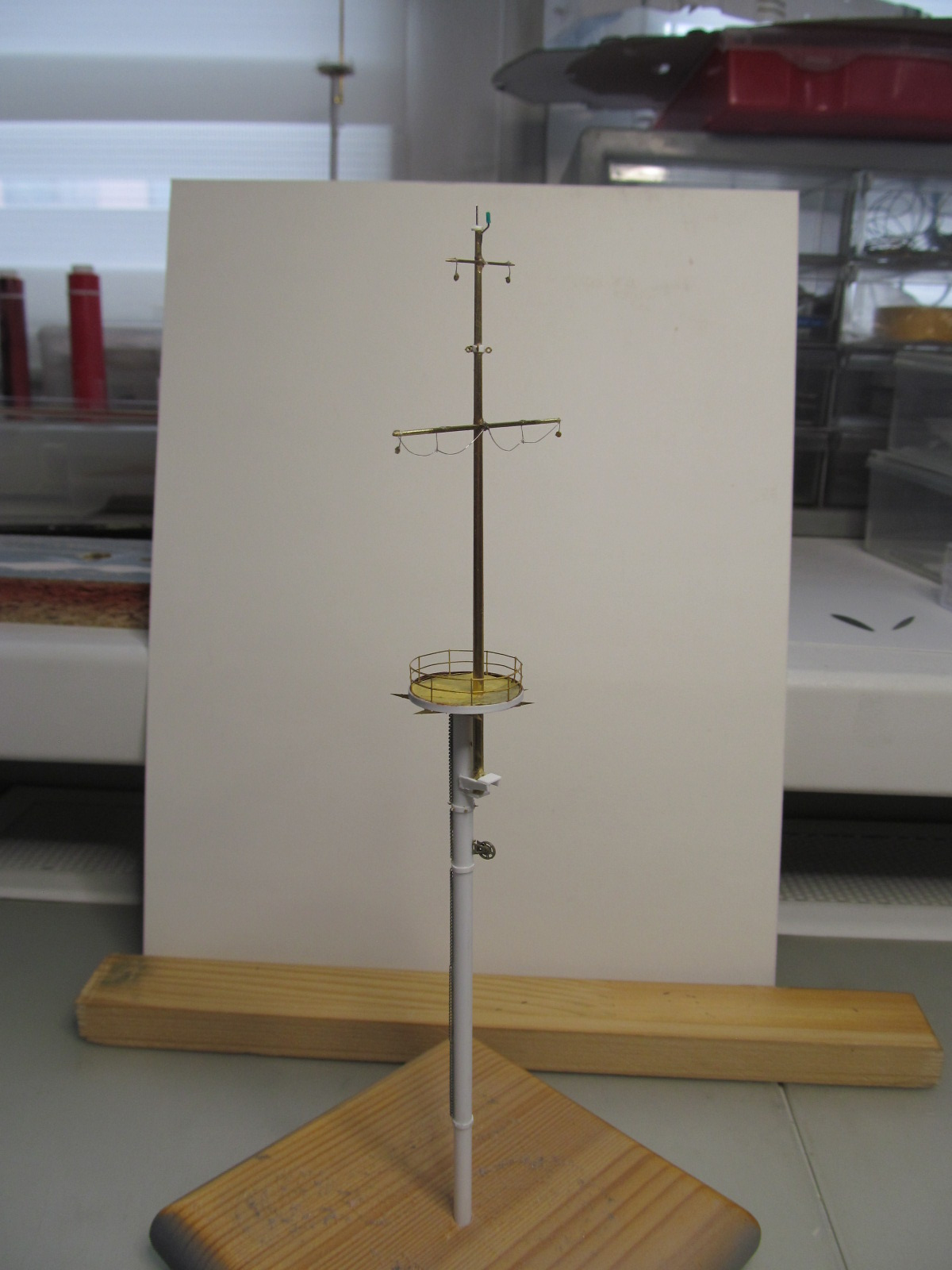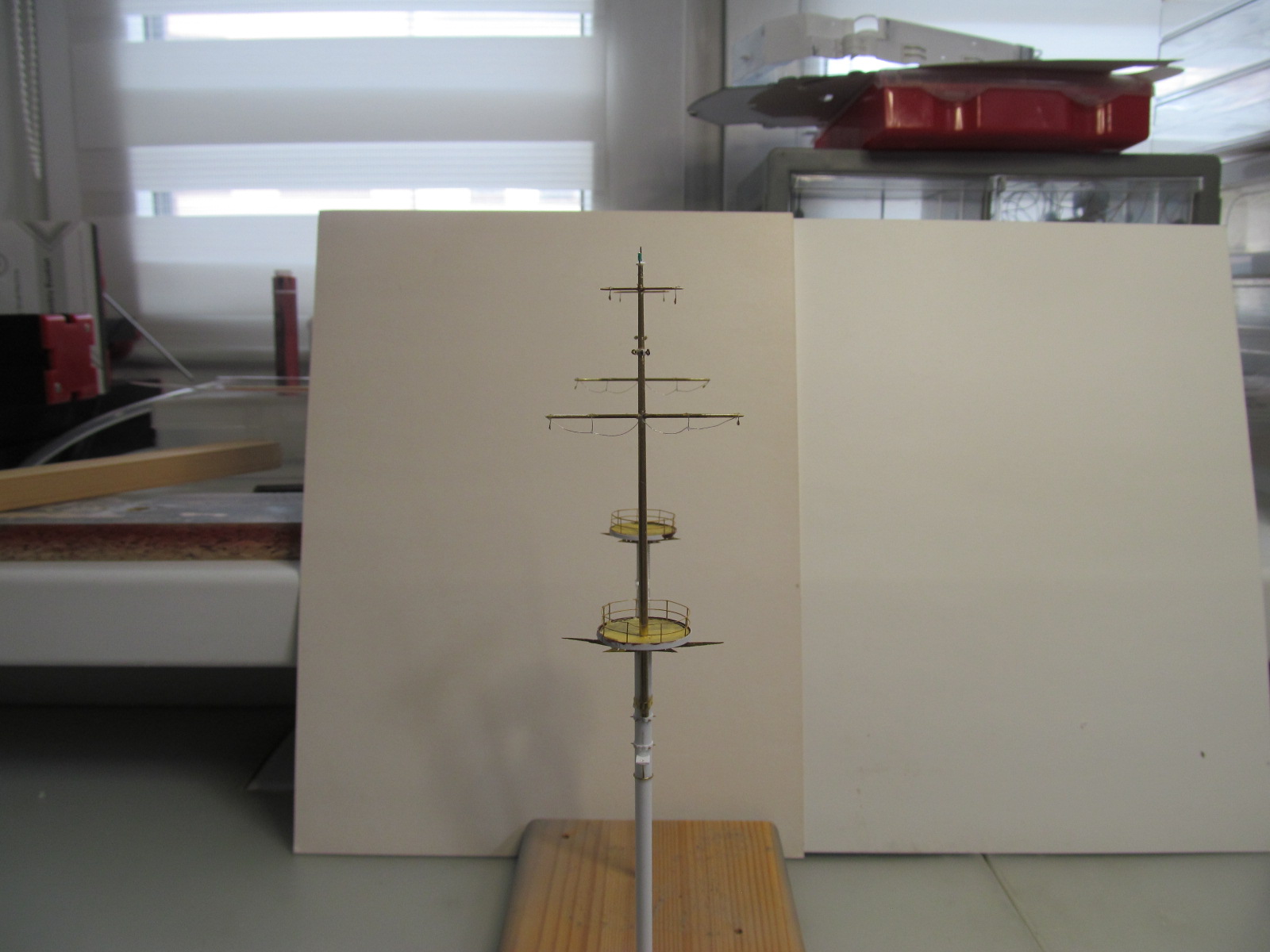 Везет у Вас хоть не жарко, а тут жара 30 градусов, делать ничего не хочется. Мачты хорошо получаются, а я вот так не могу, если начал корпус то только его и делаю, если надстройки или мелочевку какую нибудь, то тоже до конца и сразу установить на место. А вот чтобы в коробочки слаживать, не хватает терпения.