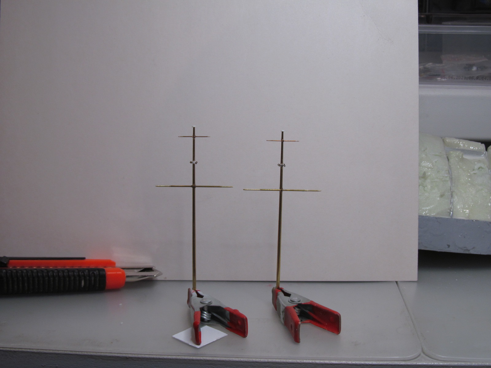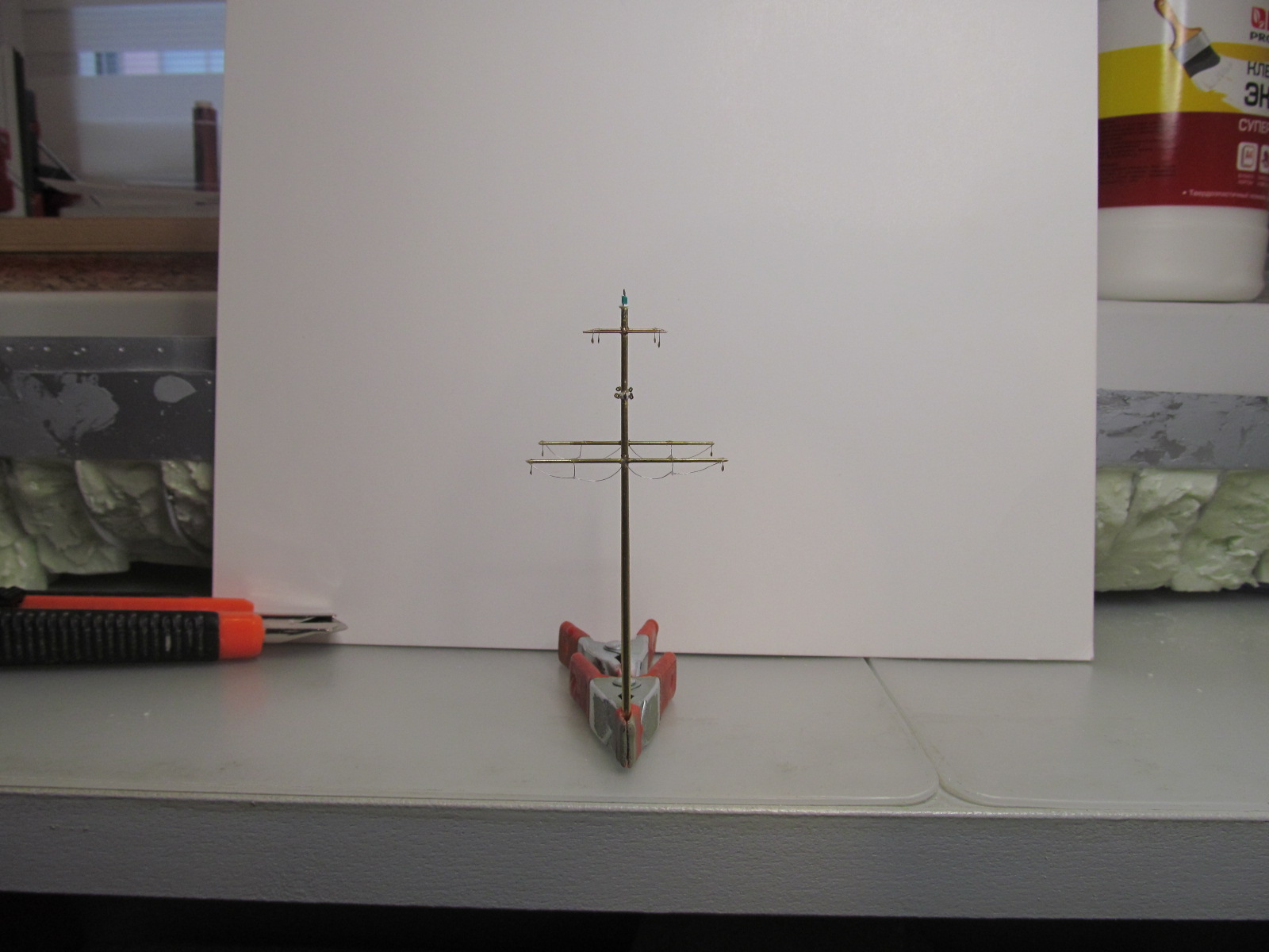 .... и пока всё это безобразие (залитое ПВА) сохнет, занялся обустройством стеньг.