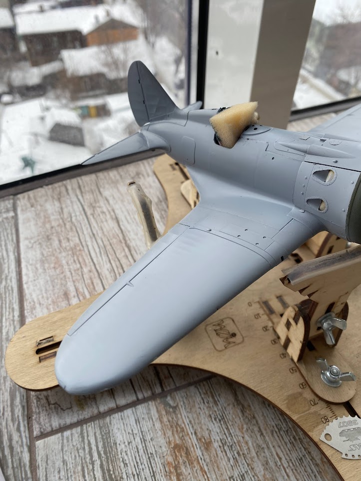 Обработал от загрязнений и нанес серый грунт от Вайлдера - разбавлял ТАмией Х-20А
