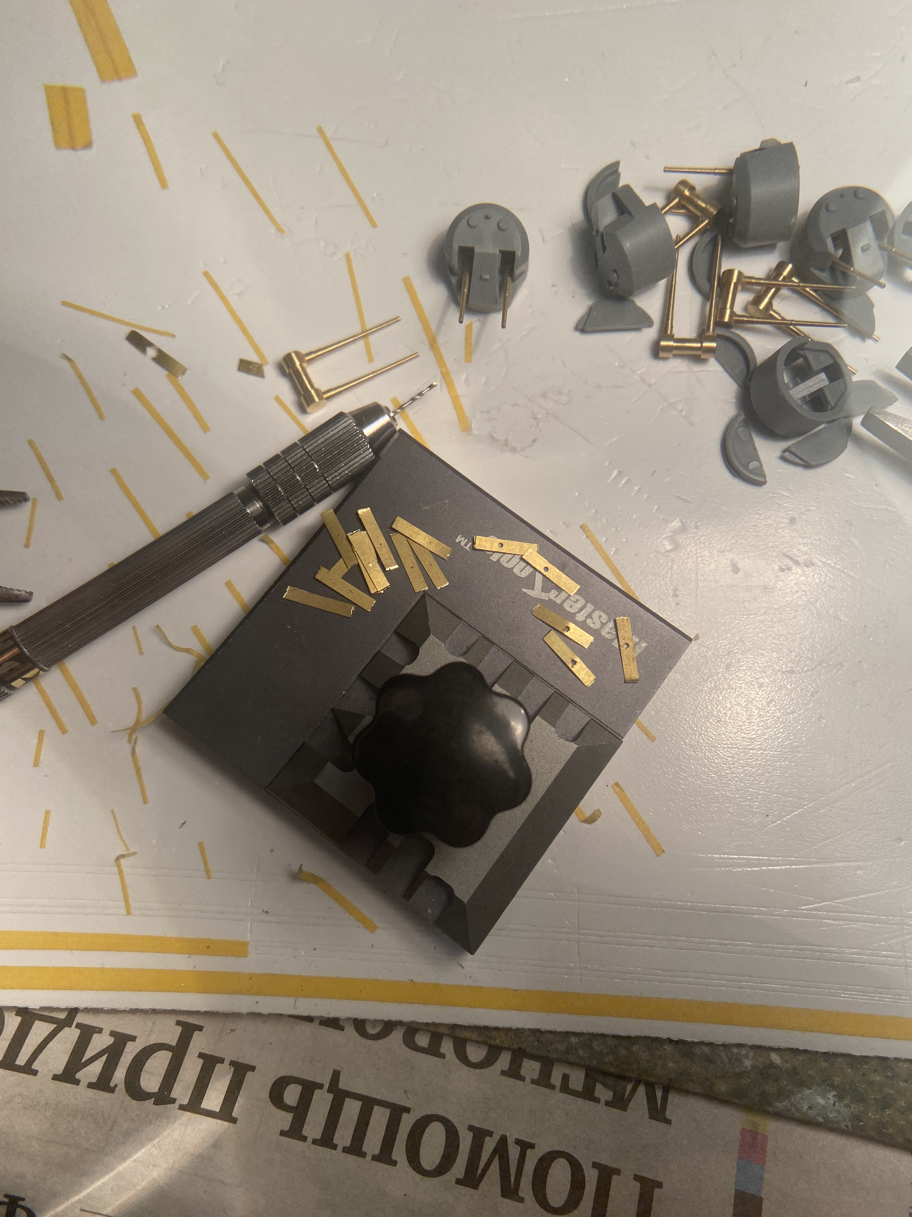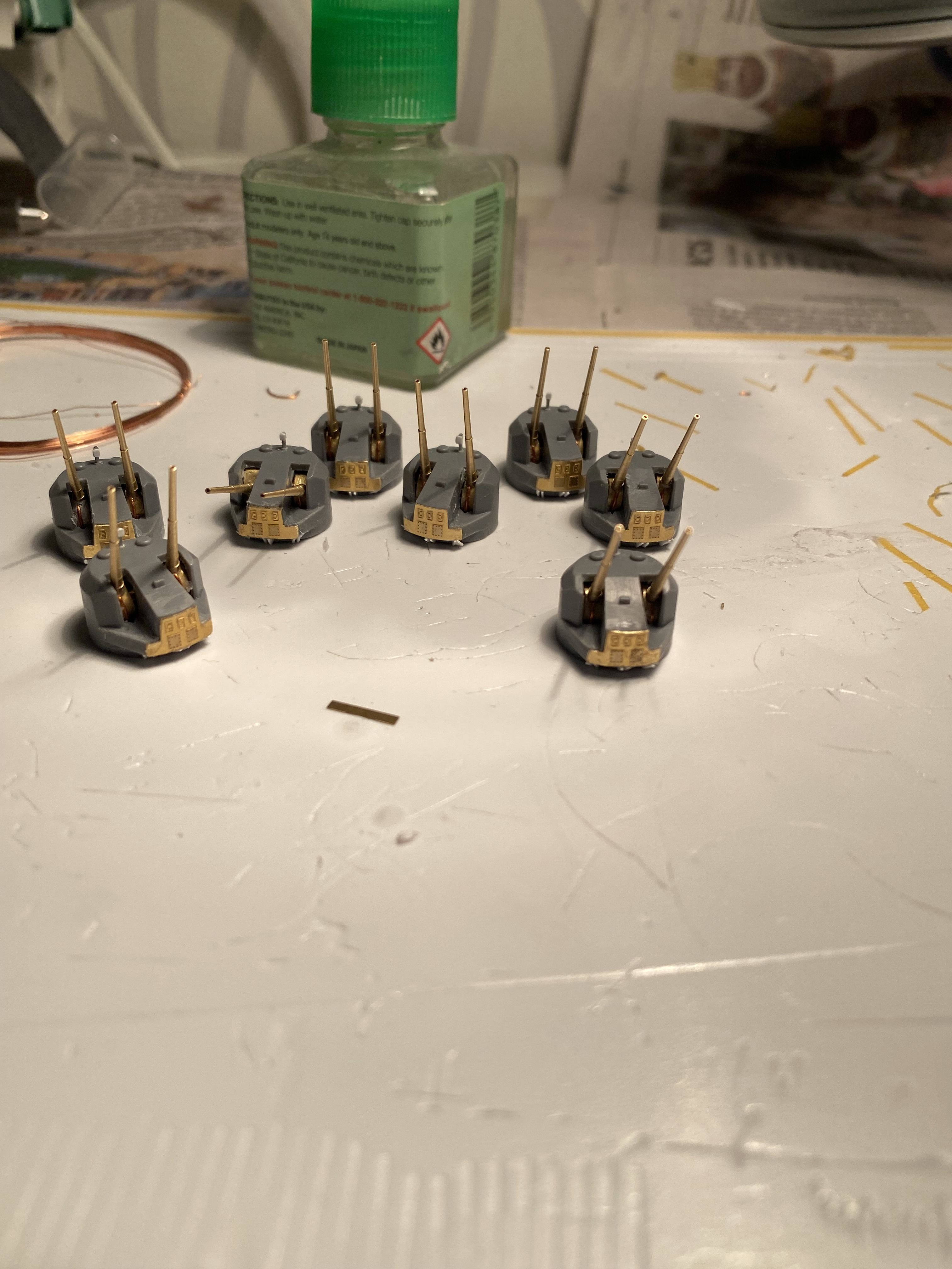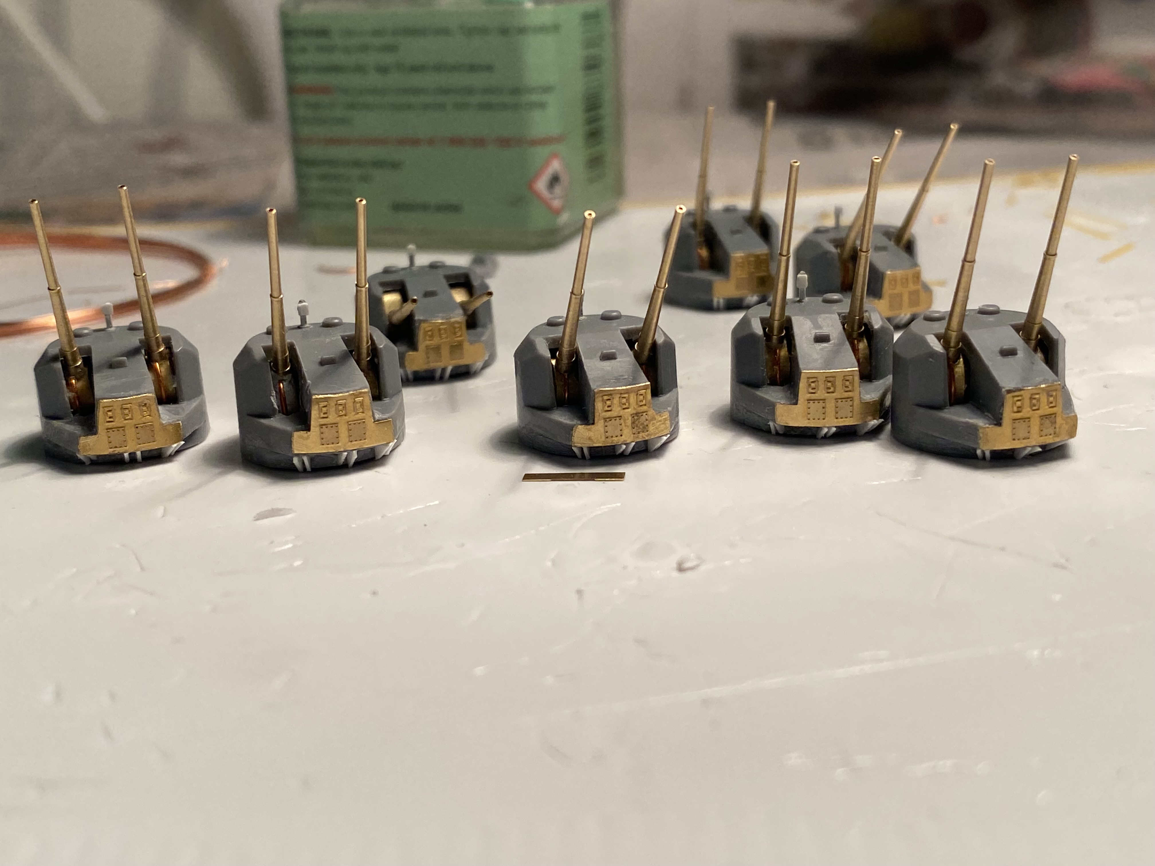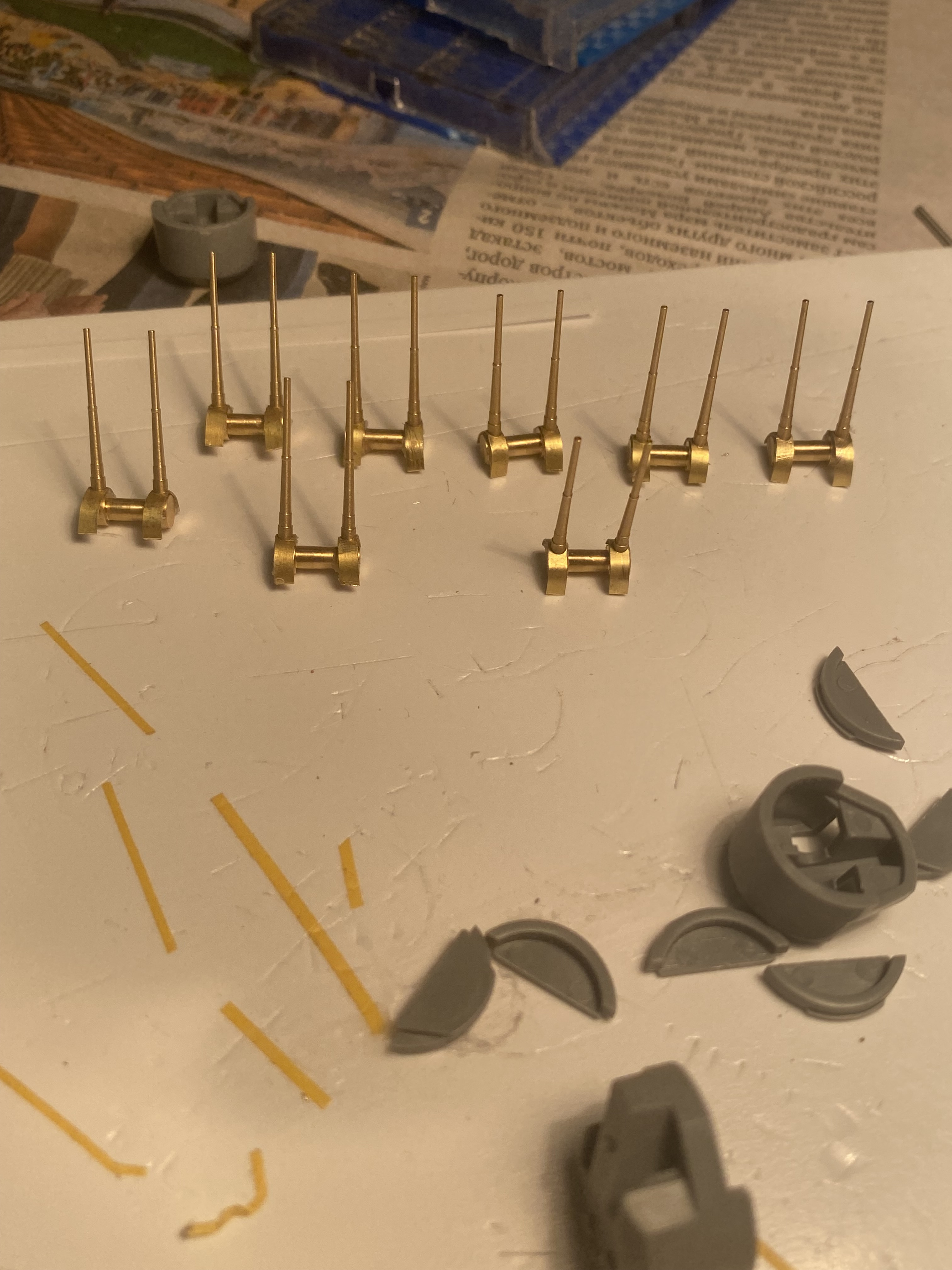 Сделал (весьма продолжительное время) «шторки» на орудия, чтобы более-менее было похоже на действительность, ведь что Тамия, что Понтос оставляют зияющие дыры в основаниях стволов….. делал из рамок травла, точил подгонял, сверлил, матерился….херня конечно, но столько времени, к моему сожалению съели….