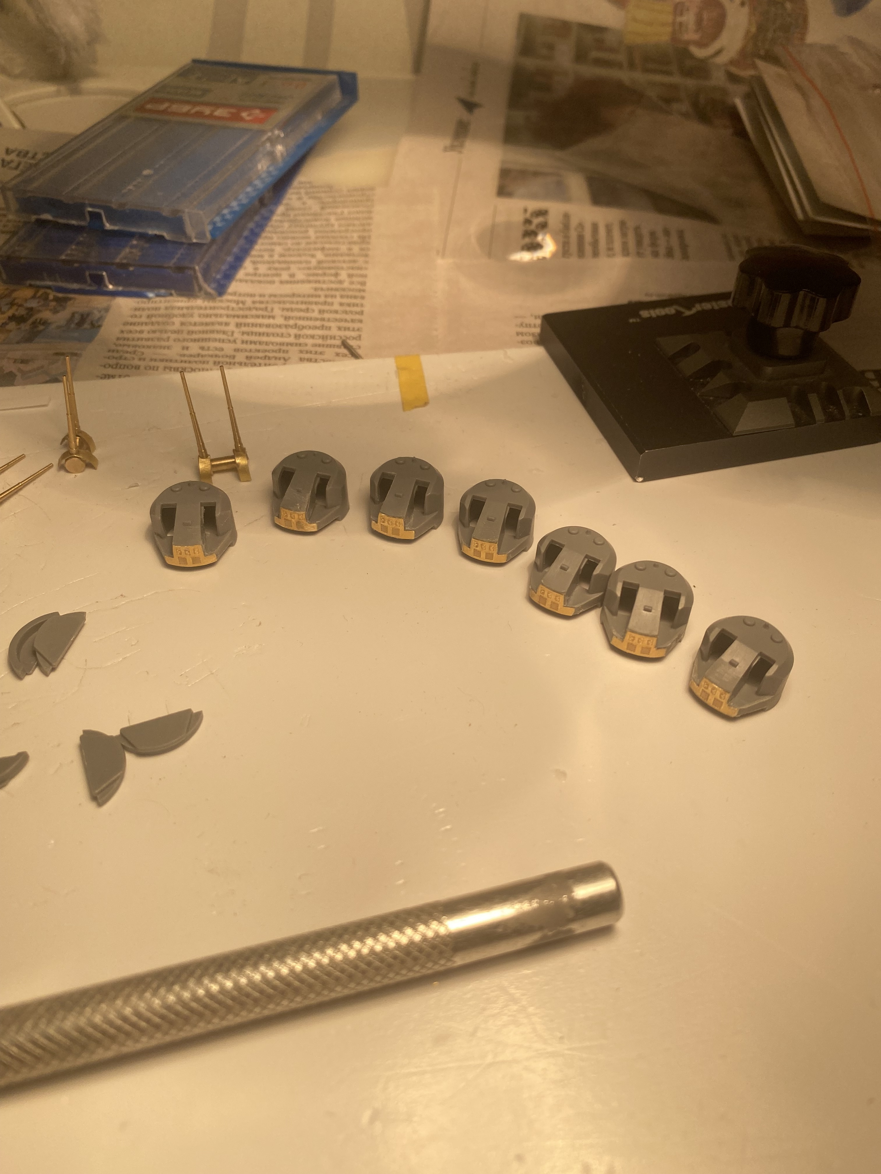 Ну вот я почти закончил возиться с башнями ГК….осталось только убрать насколько это возможно некоторые шероховатости, найти, из чего сделать трап на двухорудийной башни спереди, между стволов (была ли она там…не знаю….фоток подтверждающих это не нашёл)….. ну и загрунтовать…. Теперь собираюсь духом перейти к башням СК….тут ещё конечно с домочадцами надо договориться, что бы мне выделяли свободного времени….