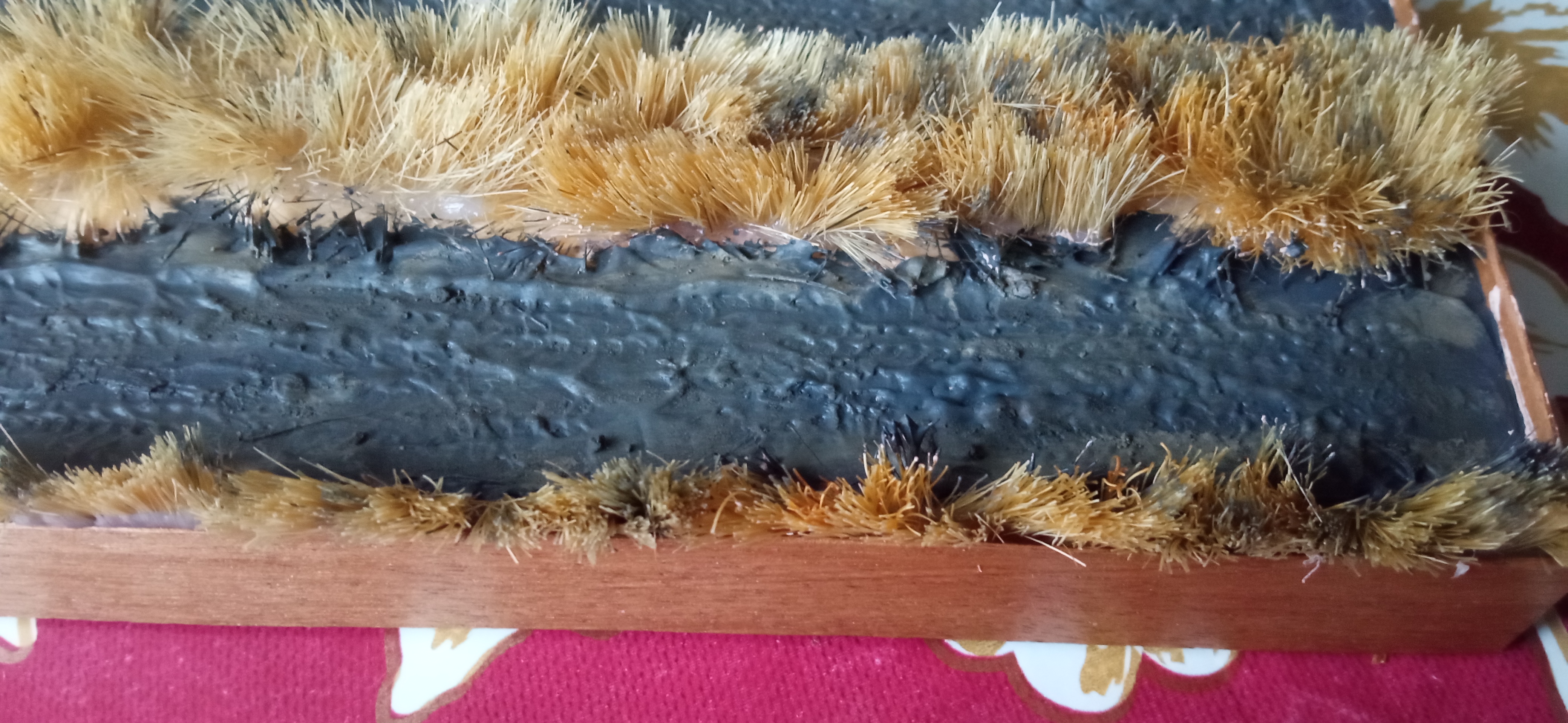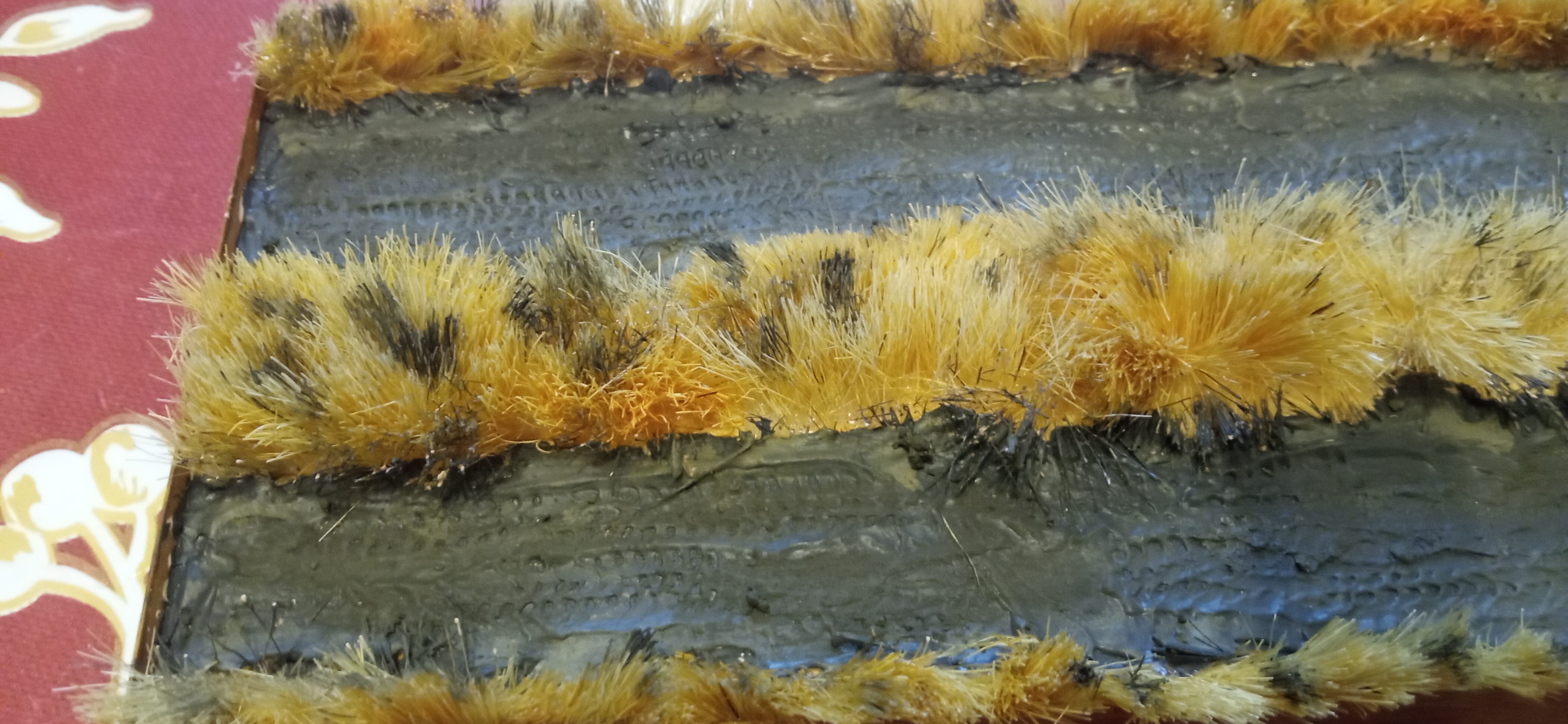 Основа - смешанный акрил от акана: черный и хельграу. Ближе к краям колеи "грязищща" от арм.пнт, смесь "темная русская земля" от хаси и местами припорошено таким же сухим хасиным пигментом.