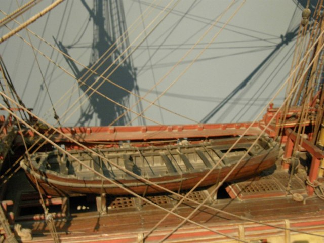 Отрывайте! Как раз, если речь идёт об эстетике, "когда правильно - тогда и красиво". Снятие руля (понятно, что он мешает работе команды на палубе) прописывалось даже документально. Кстати, обратите внимание на найтовы, которыми шлюпки фиксировались на кильблоках. Не заводите их крест-на крест, как это часто делают новички. Найтовы ставили и обтягивали строго на рымы в палубе "от одной стороны кильблока до другой", но никак не по диагонали. Точно так же найтовы обтягивали при постановки шлюпки на запасный рангоут и ростры: рули снимали, найтовили от одного борта до другого, но не по диагонали.