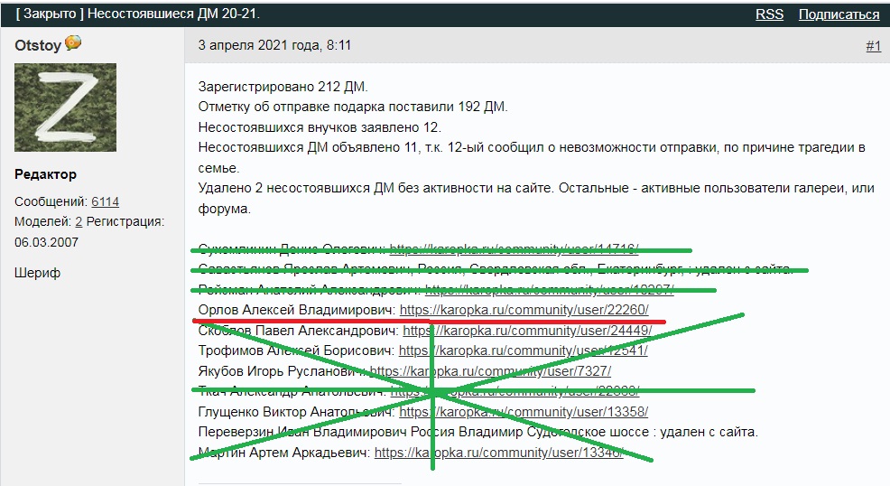 Что интересно, в опубликованном списке, плохих дедов морозов, вполне уважаемы люди, с моделями, регистрацией не днем раньше, активностью.