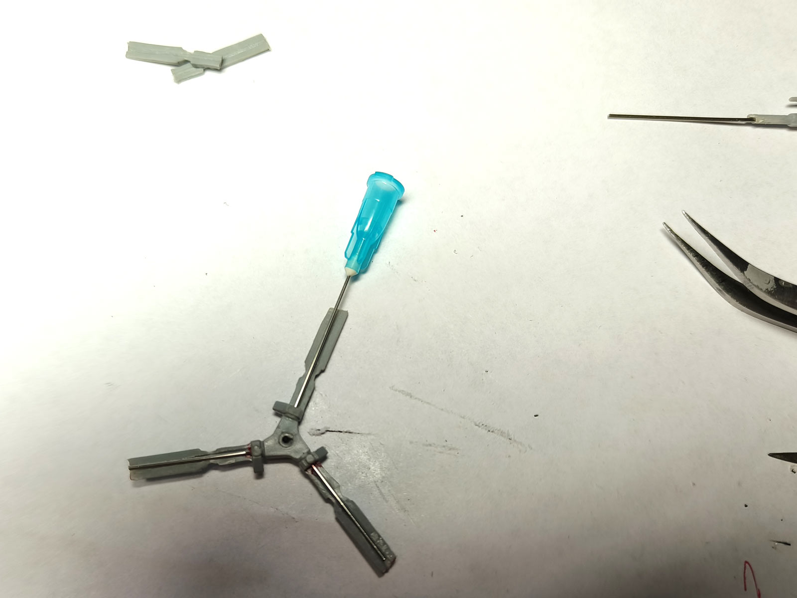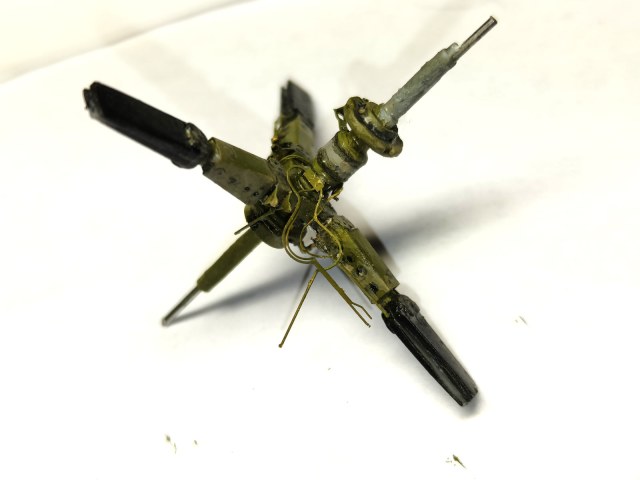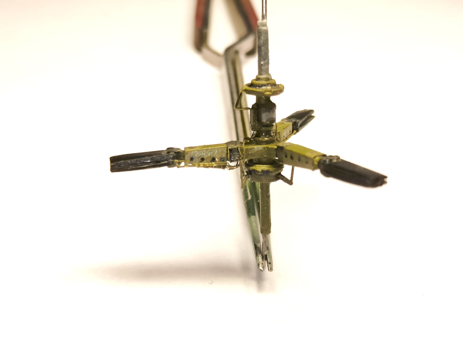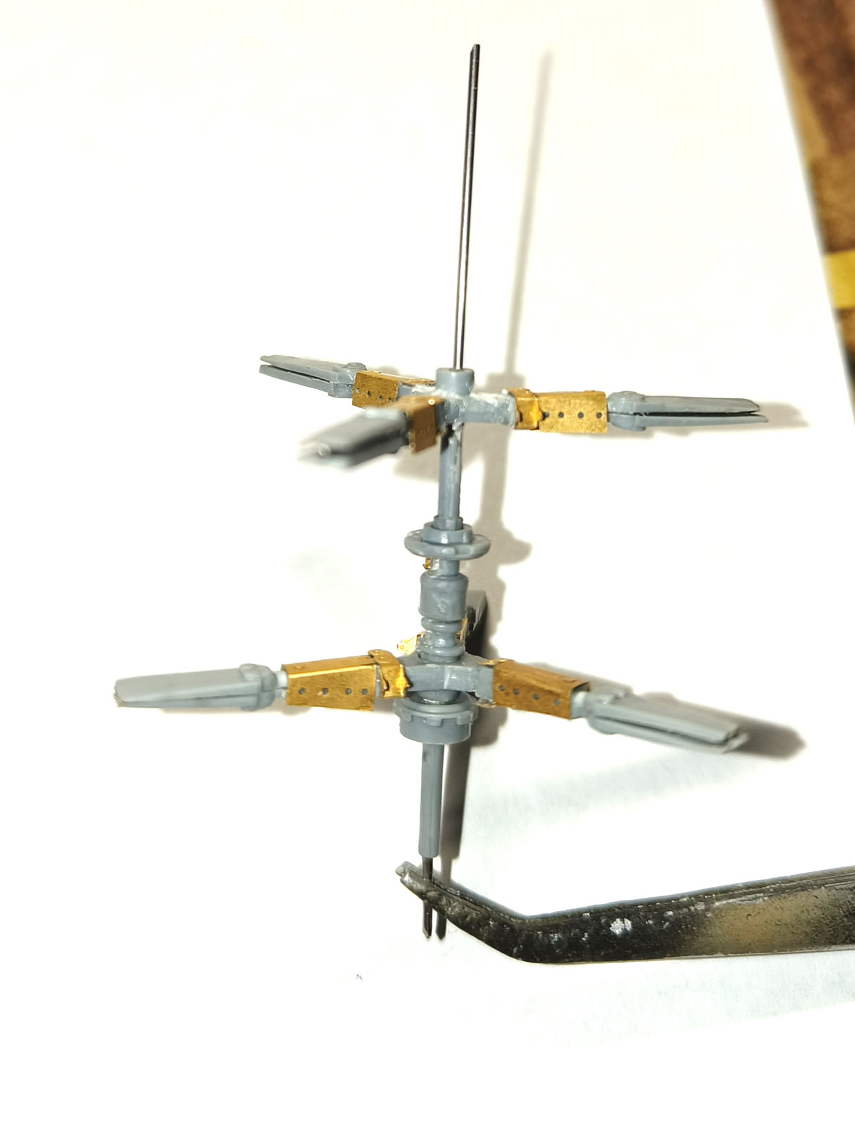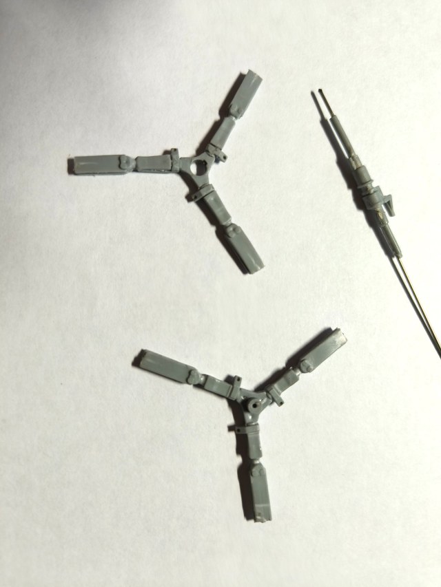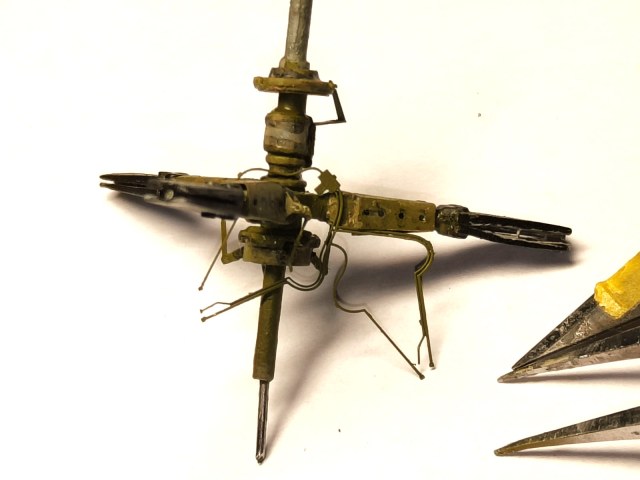 Далее занялся армированием креста нижней лопасти.. Срезаны все верхние и нижние части крепления от исходных лопастей отлитых в модели..