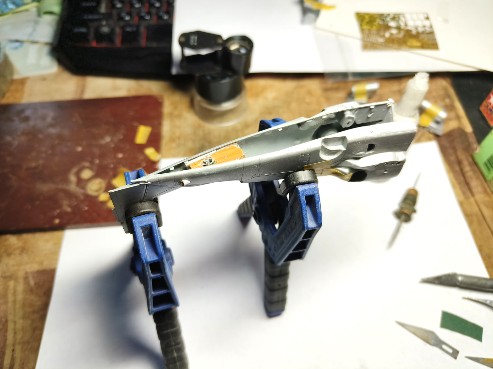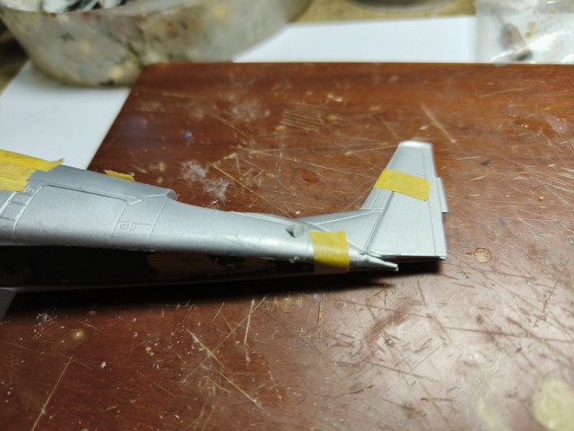 Следующие планы -- на днях окончательная шпаклёвка шва фюзеляжа, сушка, потом грунтовка и можно накладывать уже камок на фюзеляж..