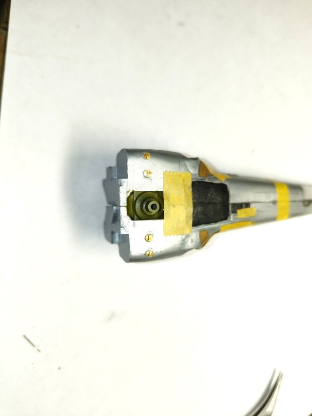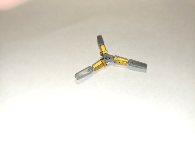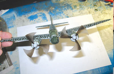 Тут уже все на мази, ступица винтов уже армирована только изобретай новый шаблон, прорезай, затеняй и вставляй ласточкин хвост на место крепления.