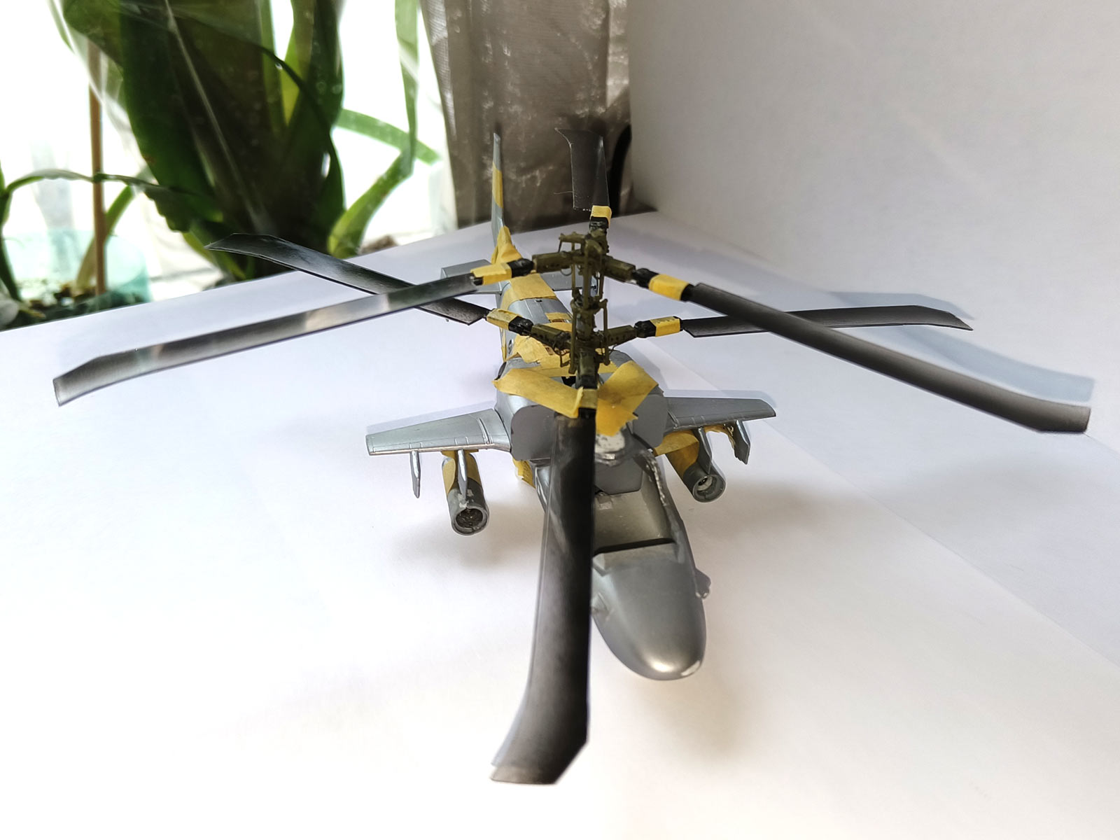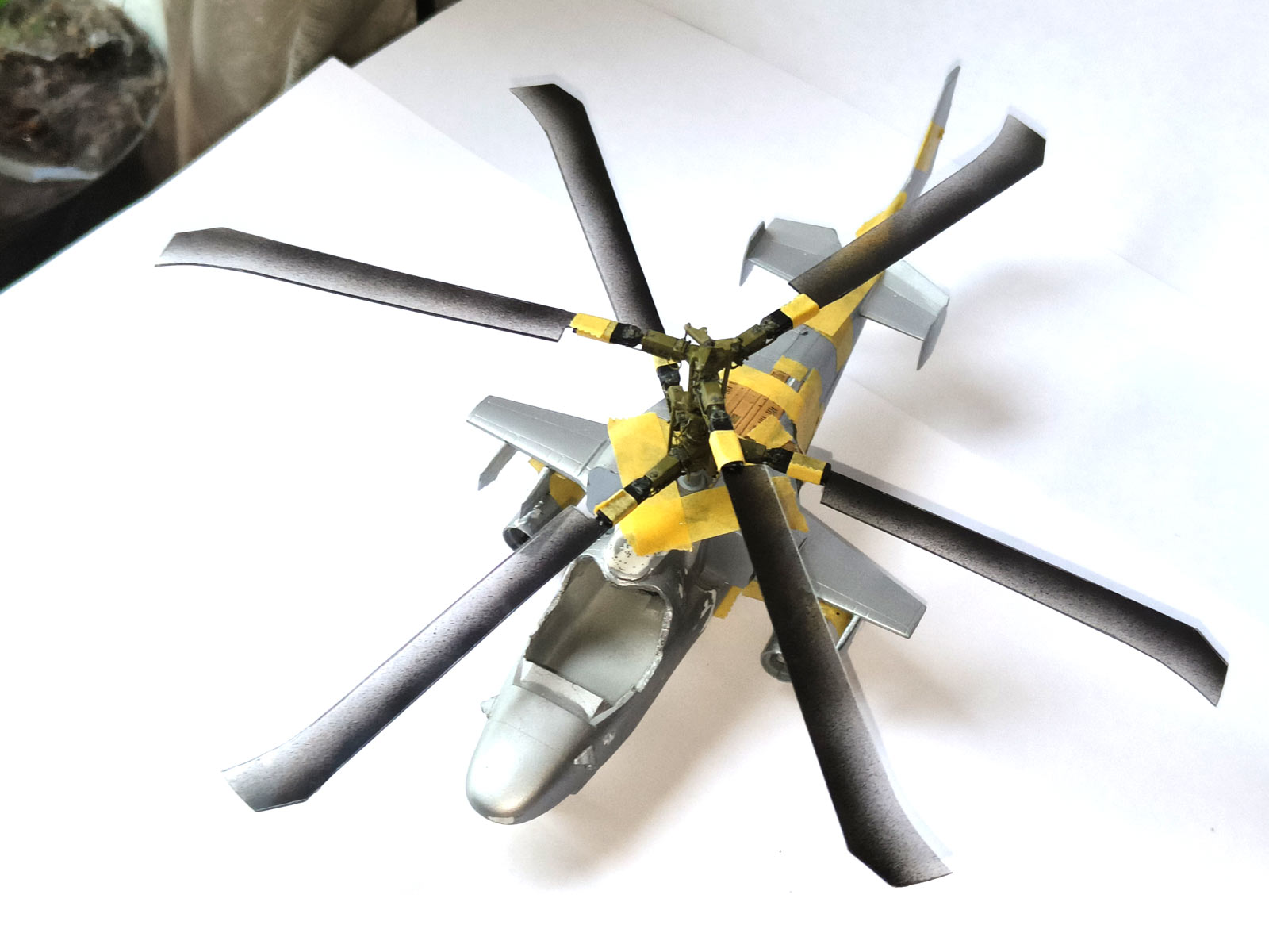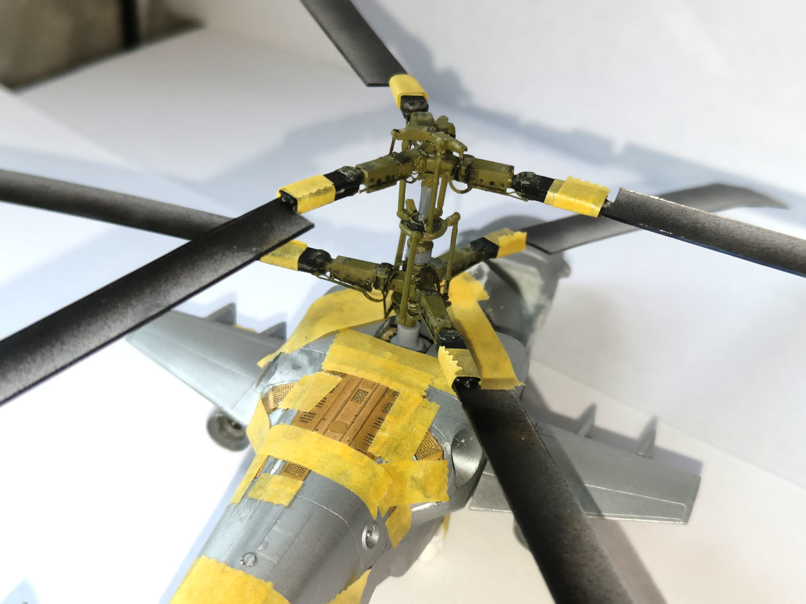 Я не знаю точно, Евгений Костин вообще строил когда либо Ка-52 или просто внимательно рассматривал литники в коробке.