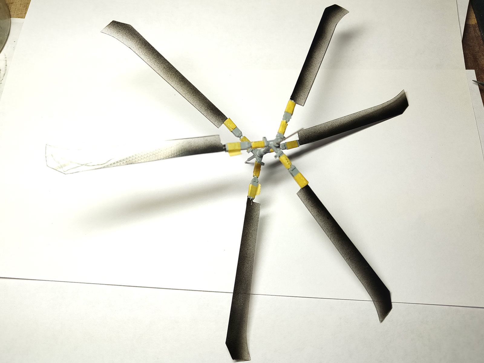 PS крайнее действие по данной конструкции - нанесение флат футуры на лопасти... Сохнут показывать пока нечего. Но бликовать они уже так не будут никогда.