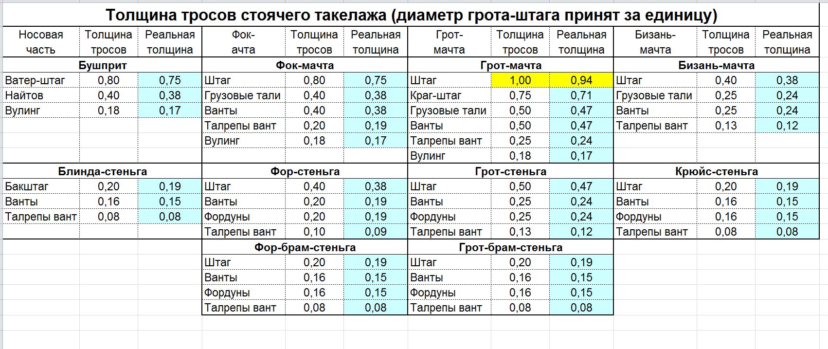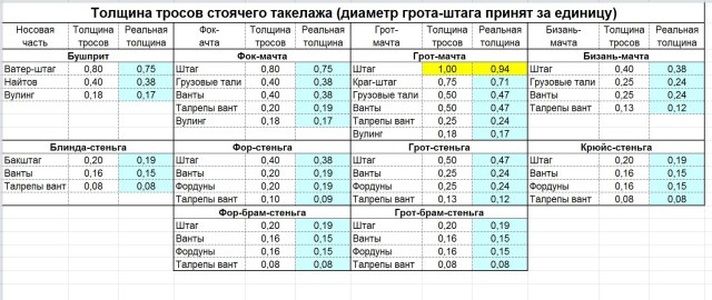 Как заметил Константин, слишком мелкий масштаб. Самые крупные юферсы грота - 3,3мм, основная масса  - 2,5мм и немного - 2мм. Толщина нитей по расчетам получается такая