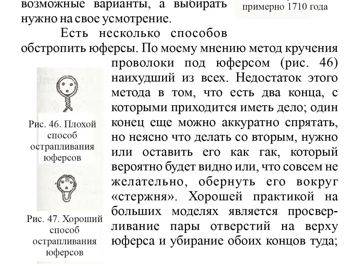 Андерсон категорически отвергает свивку концов проволочек и настаивает на полноценной петельке. В крупных масштабах, это, конечно, оправдано.