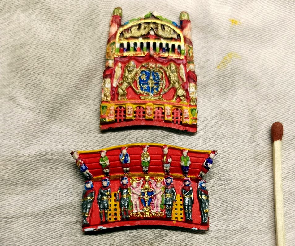 Приглушу золото на этой детали под охру. На львиных гривах портов оно, вроде, глаз не режет. Смотрится, как золотисто-желтый.