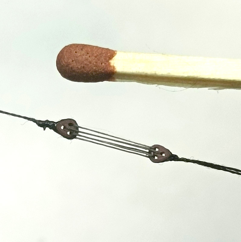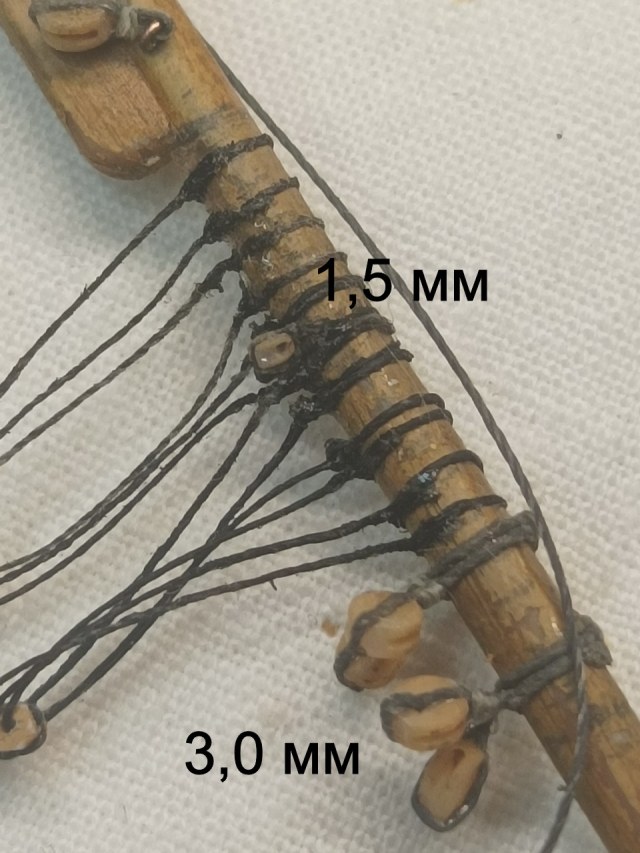 Поэтому все юферсы блинда-стеньги обвязал нитями 0,2 мм.