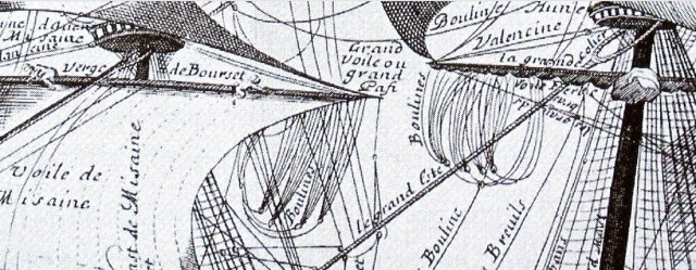 Я, например, показал часть изображения из книги по морским наукам за авторством великого Фурнье, лично плававшего на "Ля Курон" в тридцатые годы. На изображении корабля, хорошо заметно, есть указания на названия снастей такелажа. Учёный знал, что изображал.