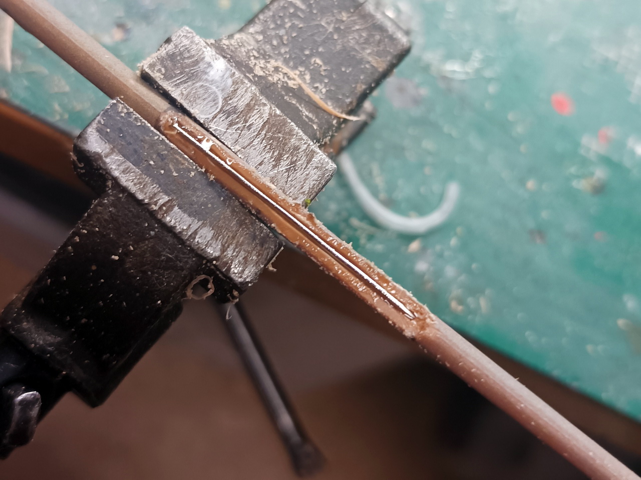 Но ничего толкового не вышло. Жила плохо облегает треугольный юферс. А тоньше ее делать нет смысла.