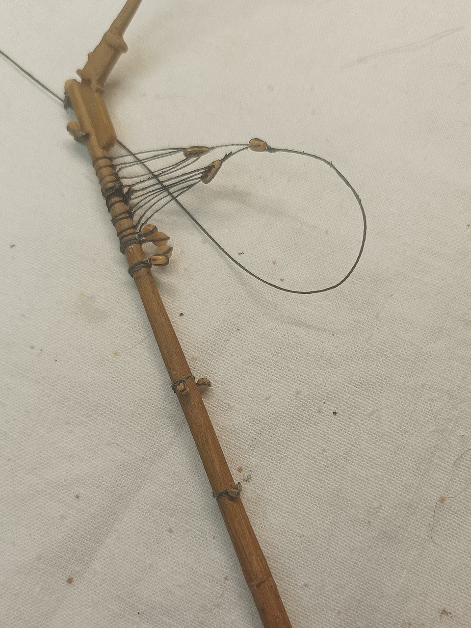 У нижних нити - это, получается вант-путенсы, а у верхних - ванты. Натягивать и крепить буду на топе.