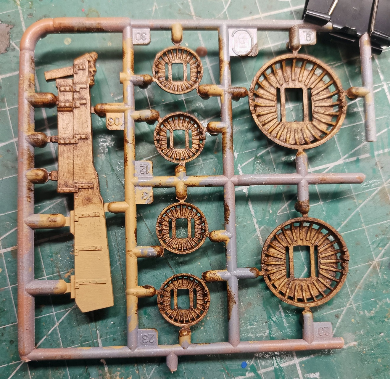Покрасил базой и затонировал маслом лафеты и марсы. Пусть сохнут.