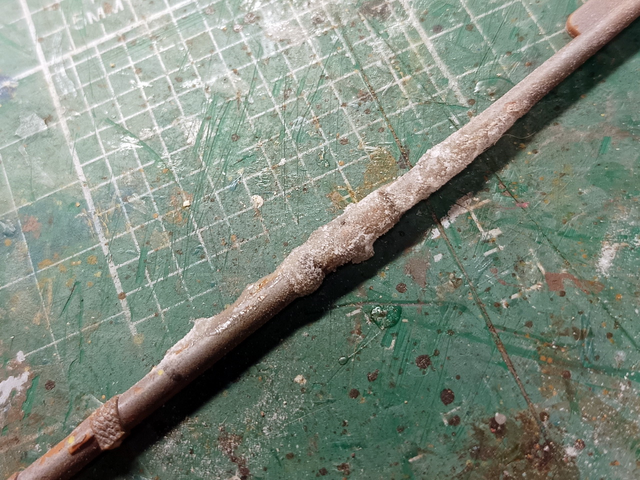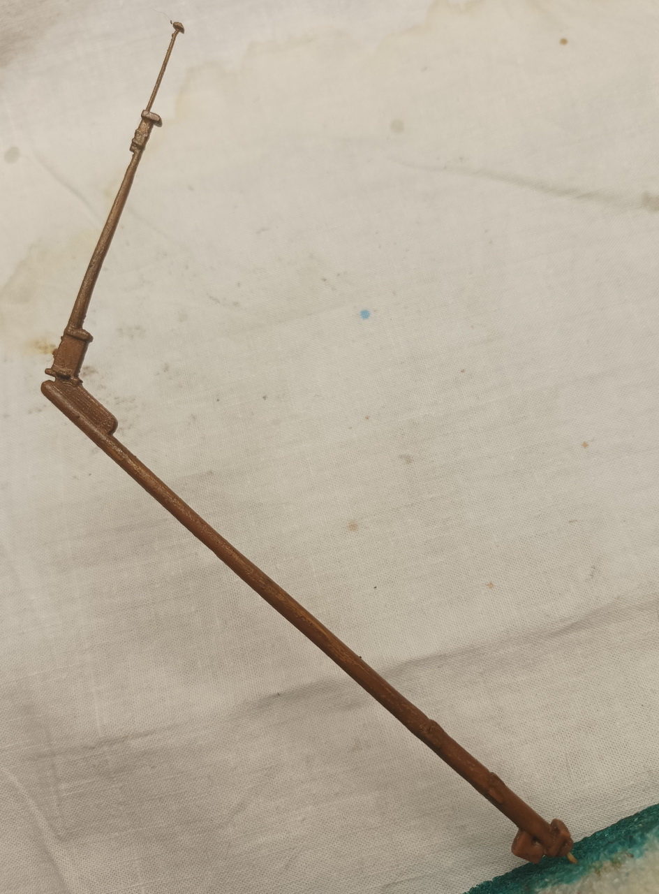 Зубочистки еще где-то едут. Исправил блинда стеньгу шпаклевкой Тамия и нежной шлифовкой. Заодно срезал флагшток. Его отлично заменяет булавка-гвоздик.