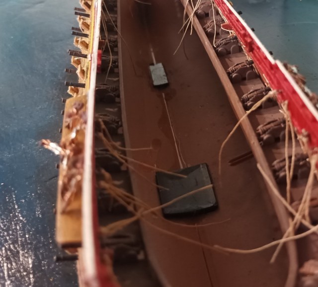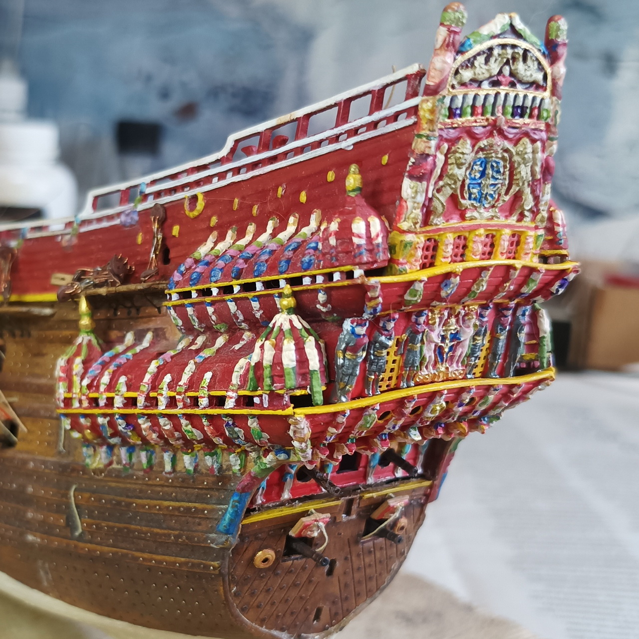 Стараюсь сделать такелаж максимально достоверно. Очень выручает качественный музейный чертеж модели в Стокгольме.