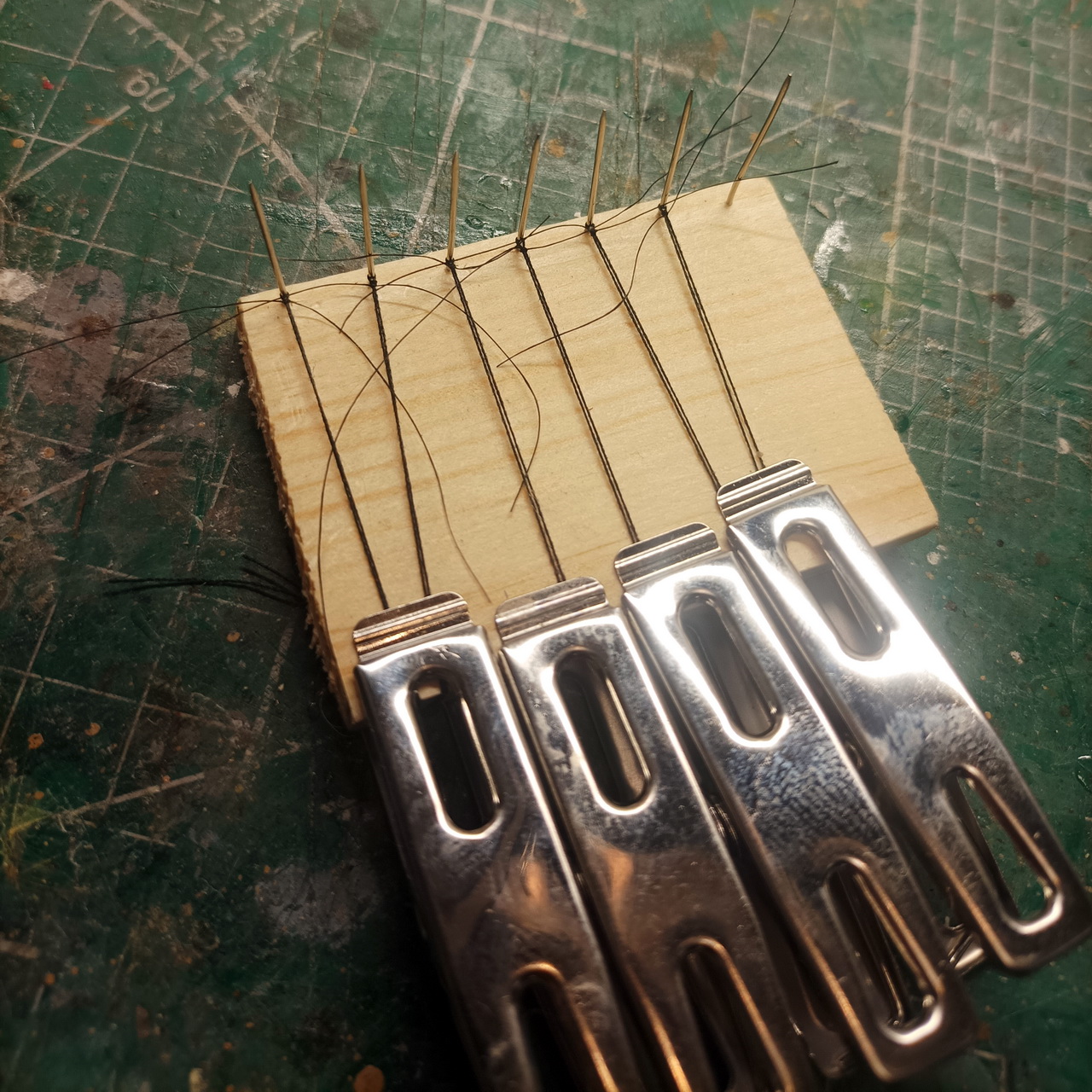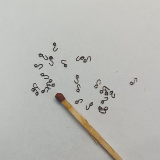 Гаки делал из черненой медной жилы. Можно было заказать травло, но доставка в три раза дороже пластинки с гаками. Поэтому выгнул их черненой медной жилы.