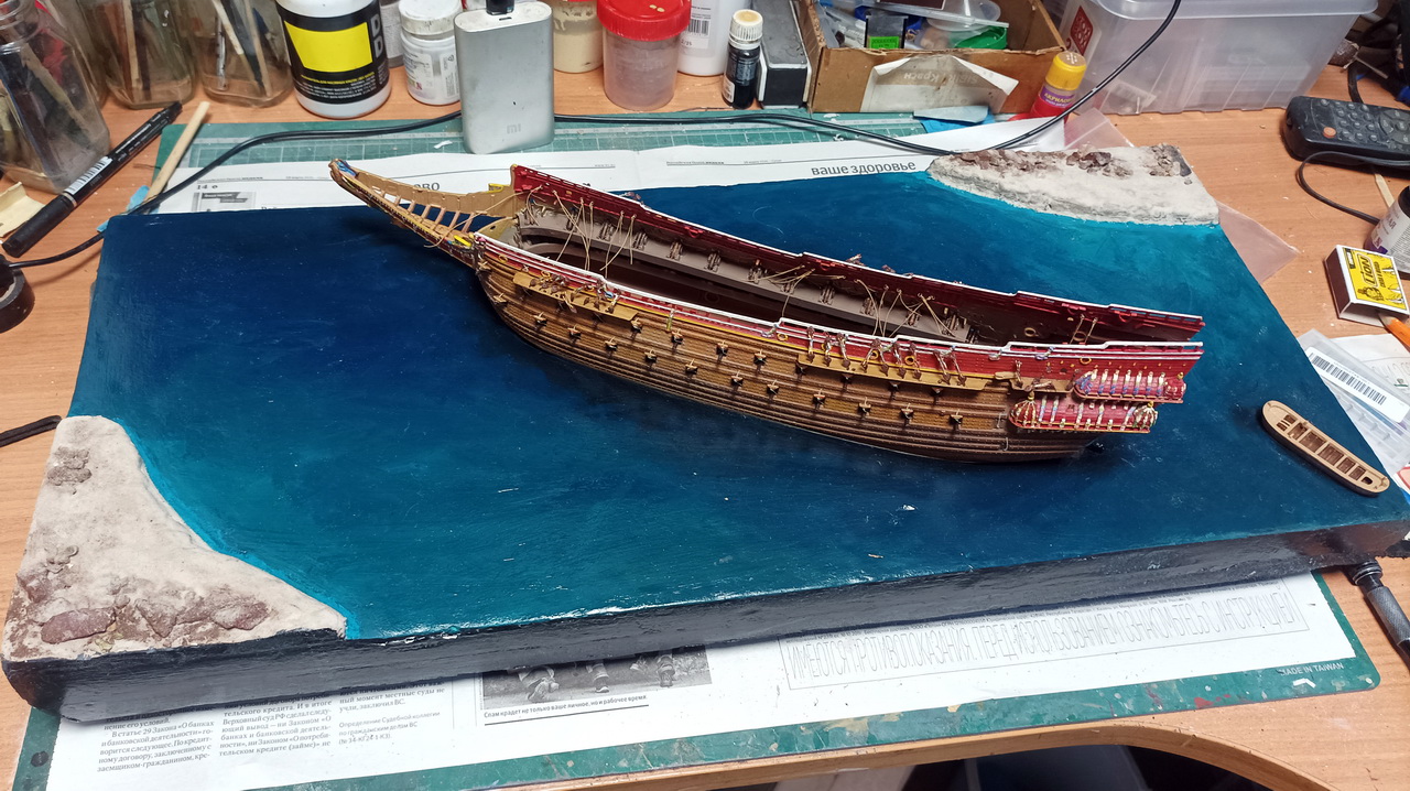 Поэтому, опять подставка будет в виде морской поверхности. Но это не диорама, а модель Васы.