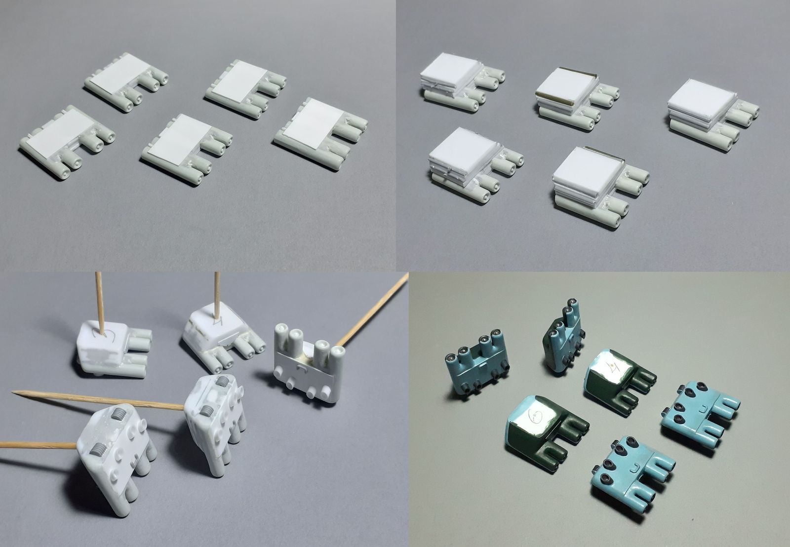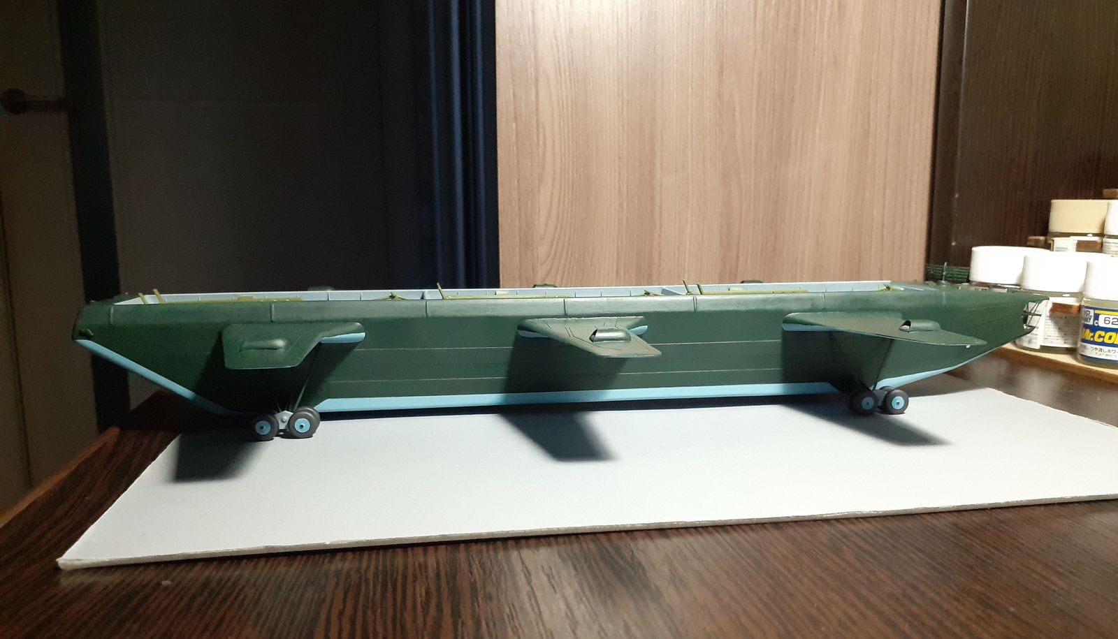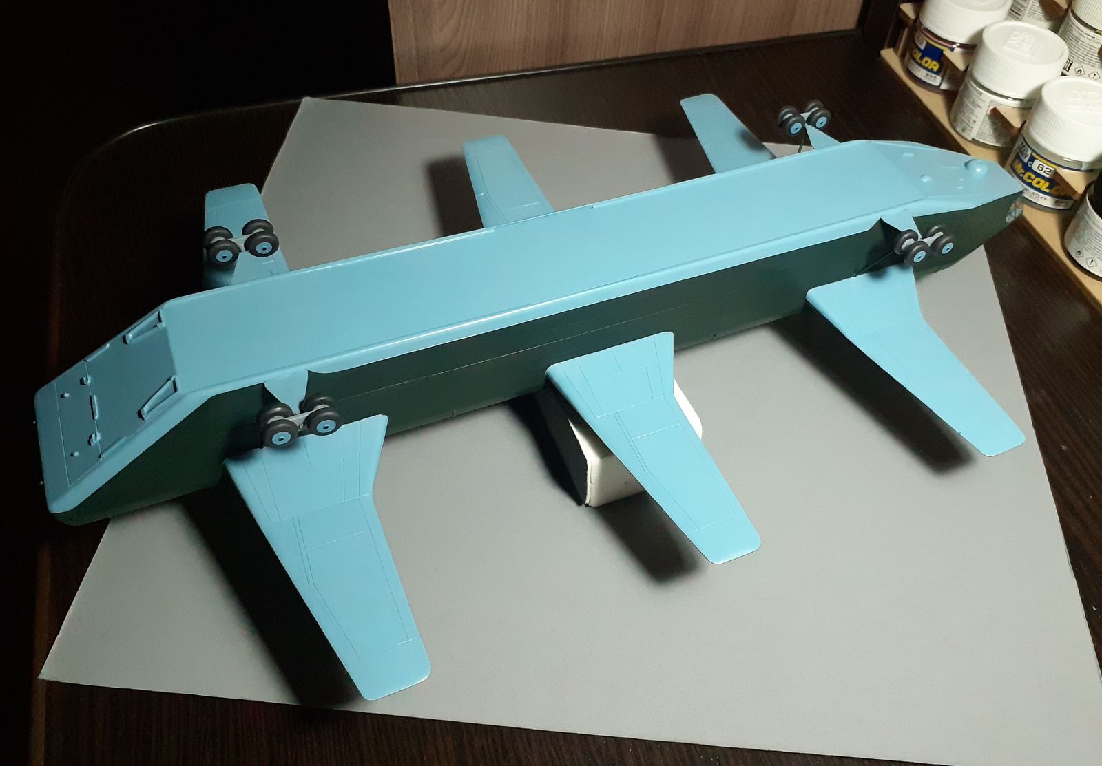 Выкрасил на черновую (пока без корректировки) в базовые цвета. Изготовил колёса и тележки для них.
