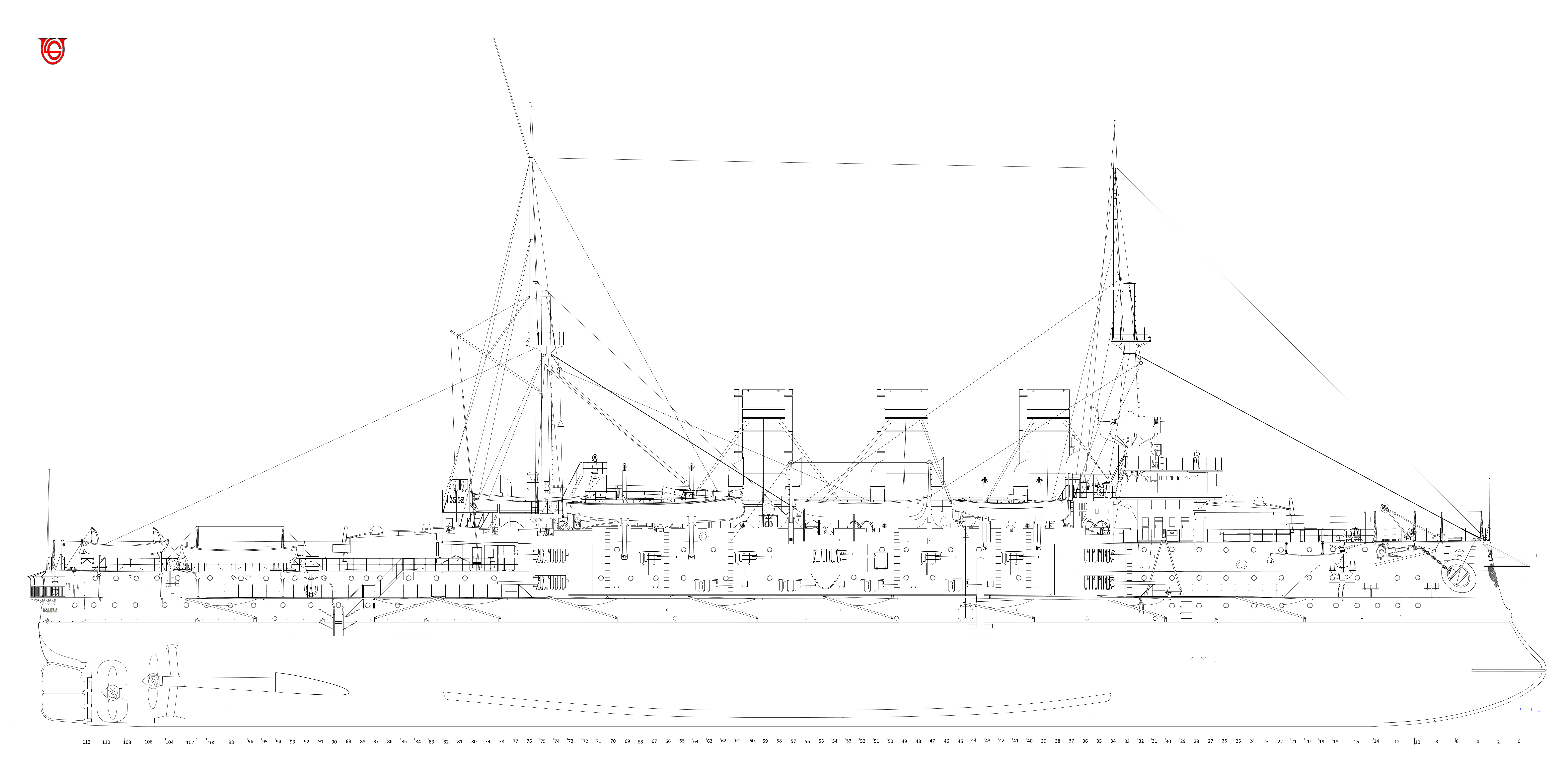 Хотя на первом снимке может это и Победа судя по расположению площадки главного компаса. На втором фото точно Ослябя но там неважно видна кормовая часть корабля. У меня в доступе только фото ЭБР Пересвет где видны иллюминаторы под адмиральским балкном, но конечно не факт что они были на Ослябя. Если брать за основу известный альбом по Ослябя из РГА ВМФ то у вас нарисовано правильно. ПО итогу всего сказанного есть некоторые сомнения по кормовой части корабля в плане расположения в ней иллюминаторов.