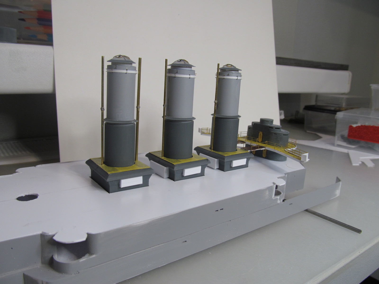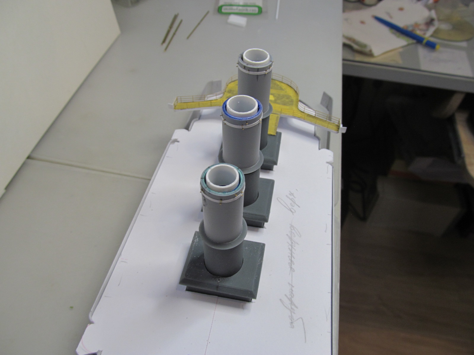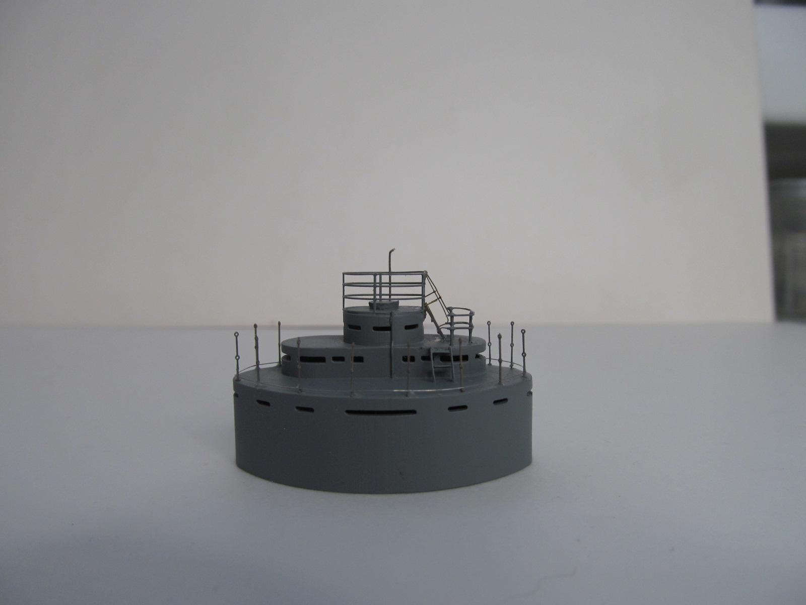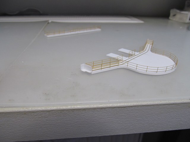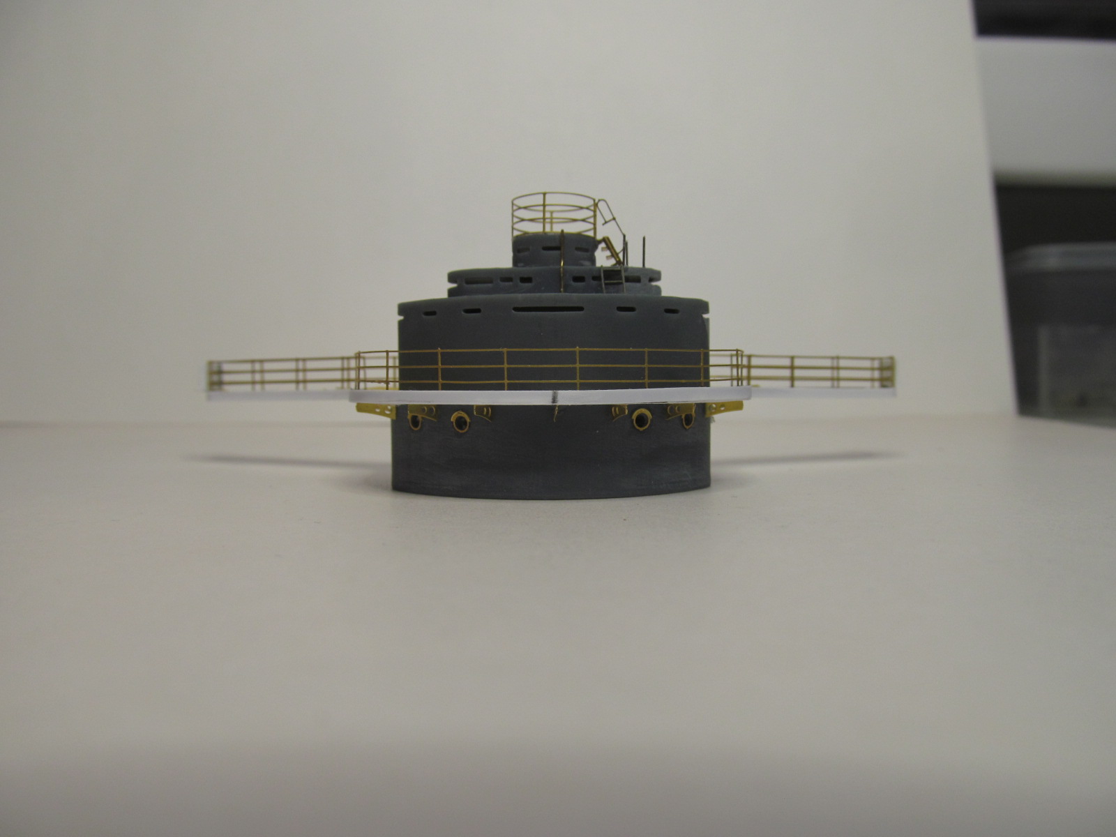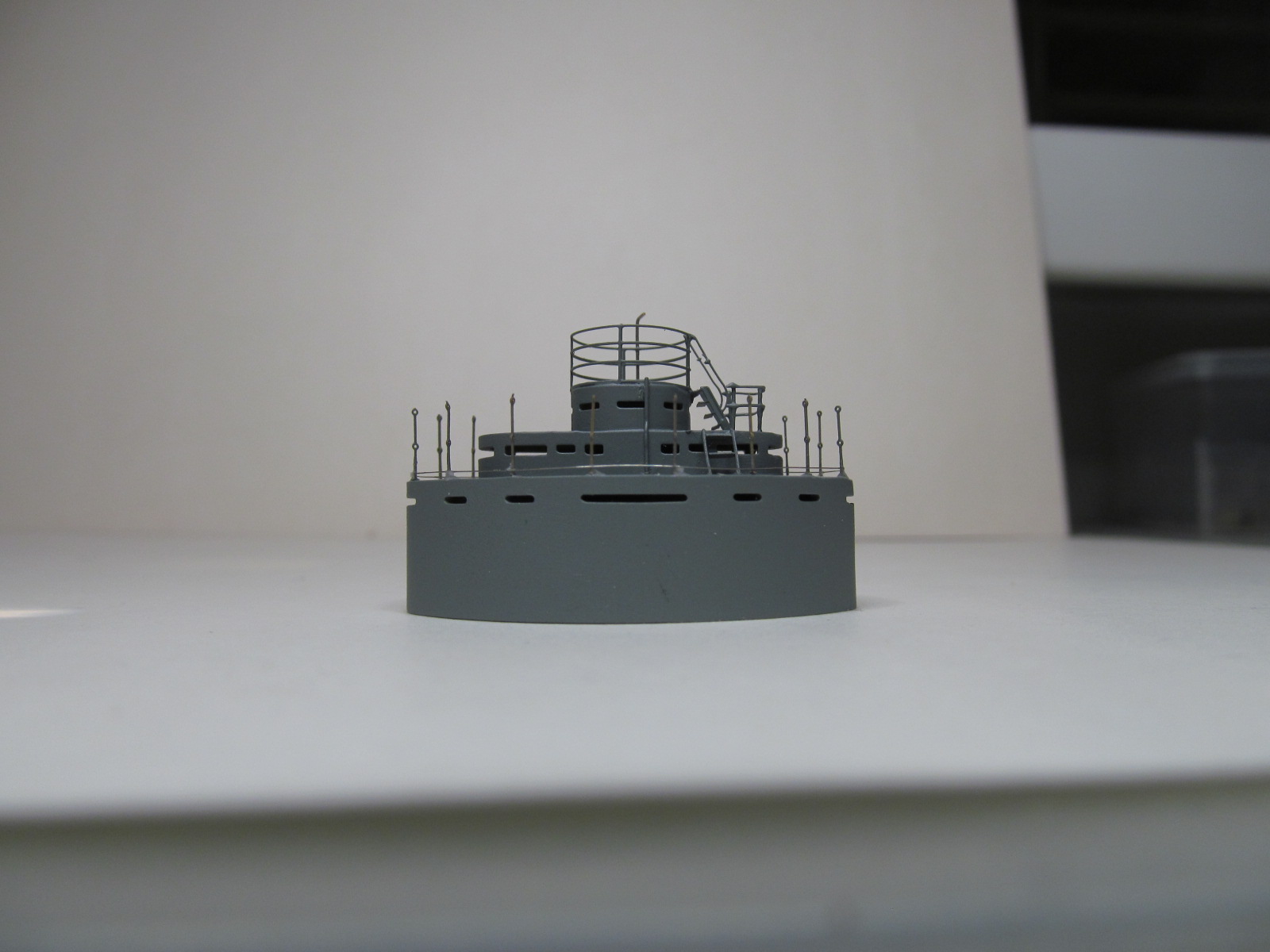 Стойки по периметру крыши боевой рубки - от Papermodeling. вот только дырочек для протяжки тросов в них практически не было, пришлось рассверливать.