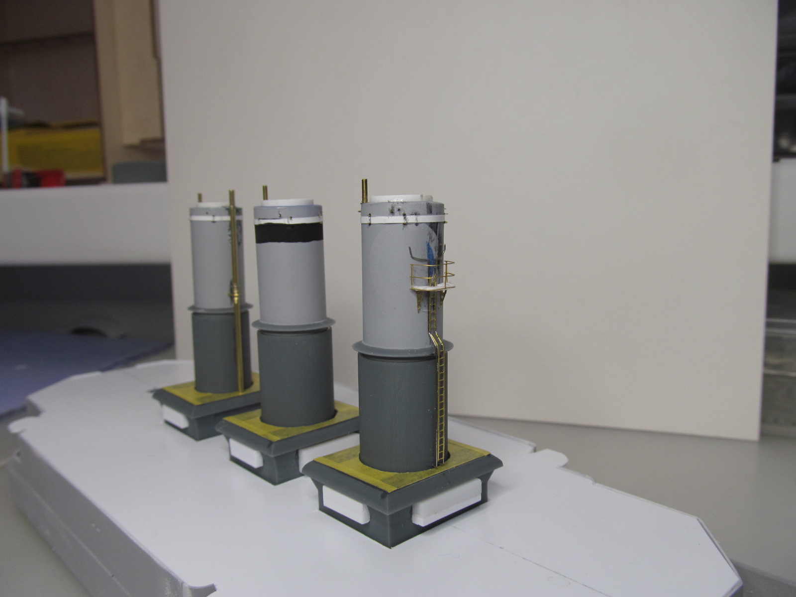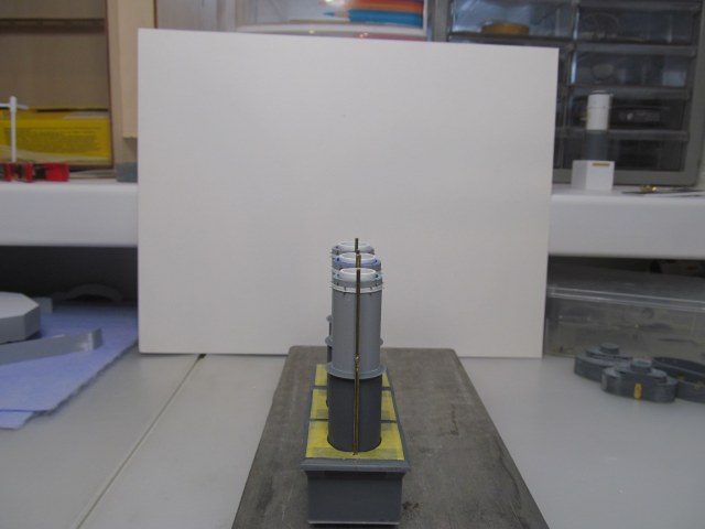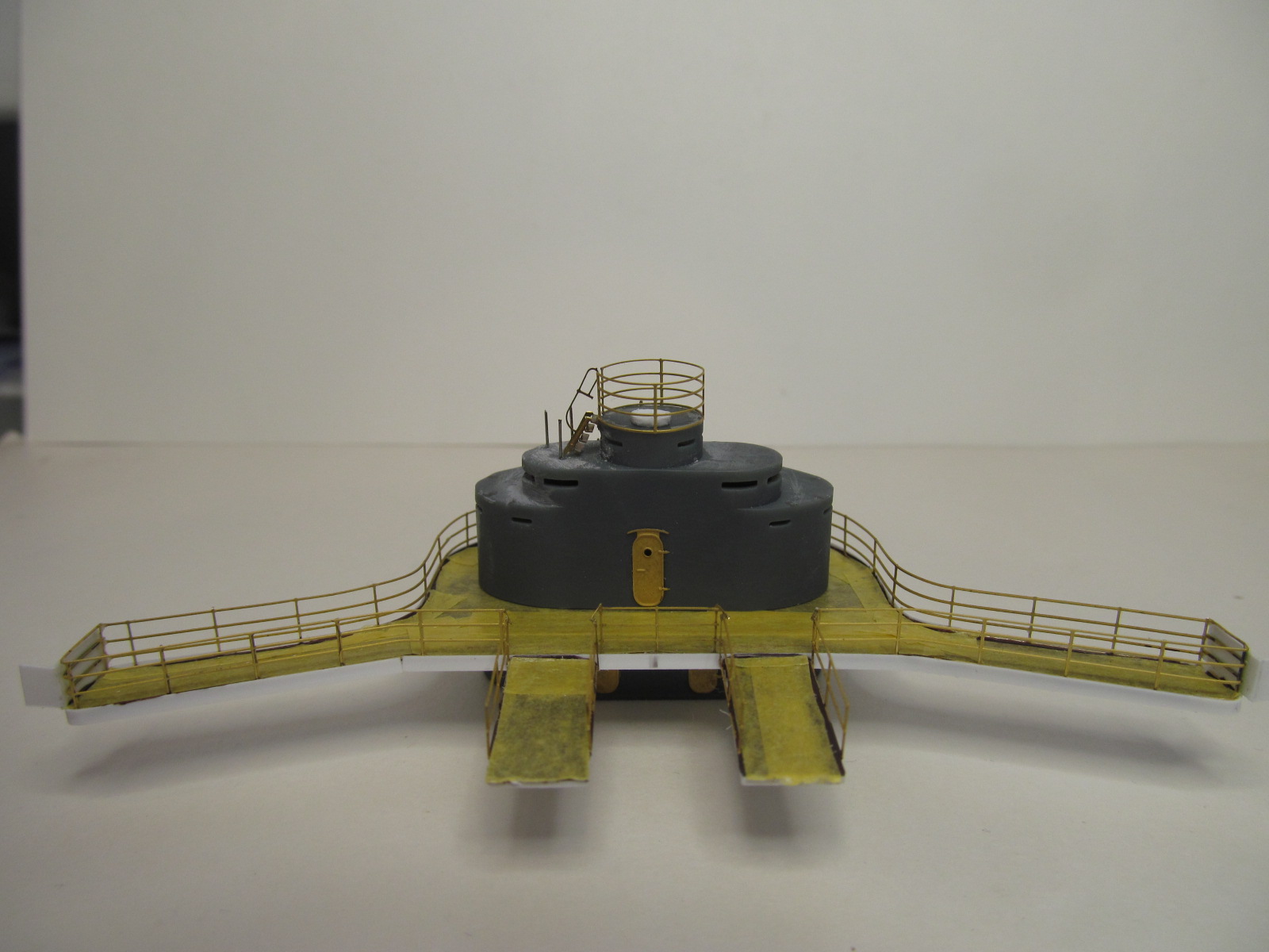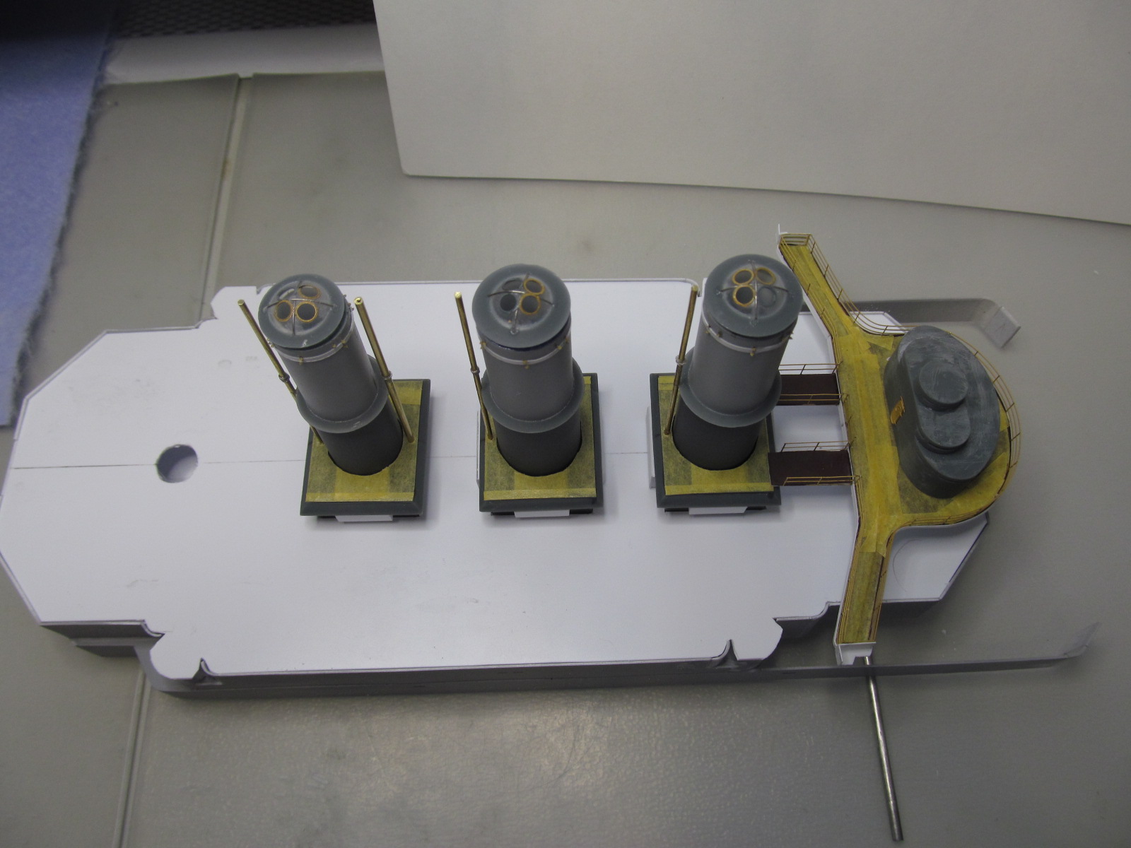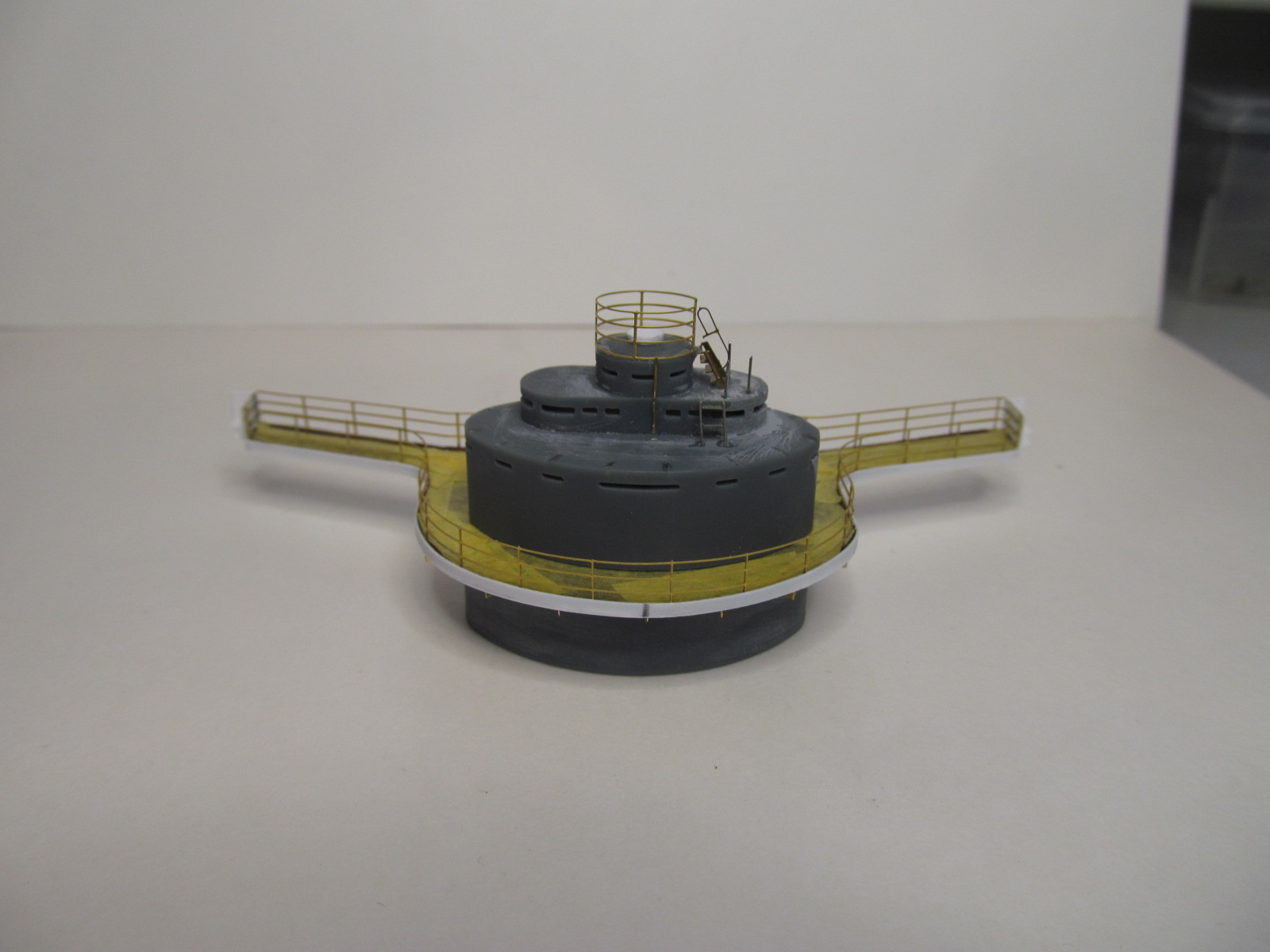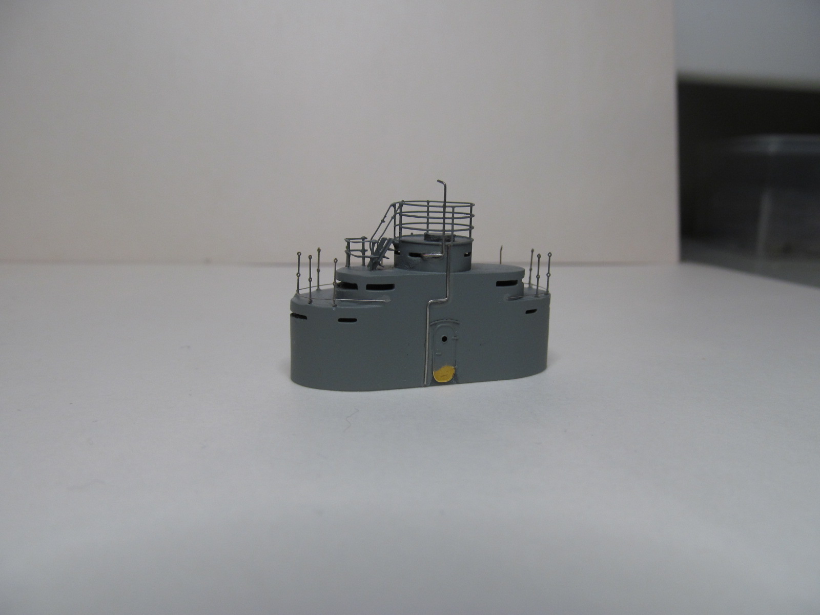 Стойки по периметру крыши боевой рубки - от Papermodeling. вот только дырочек для протяжки тросов в них практически не было, пришлось рассверливать.