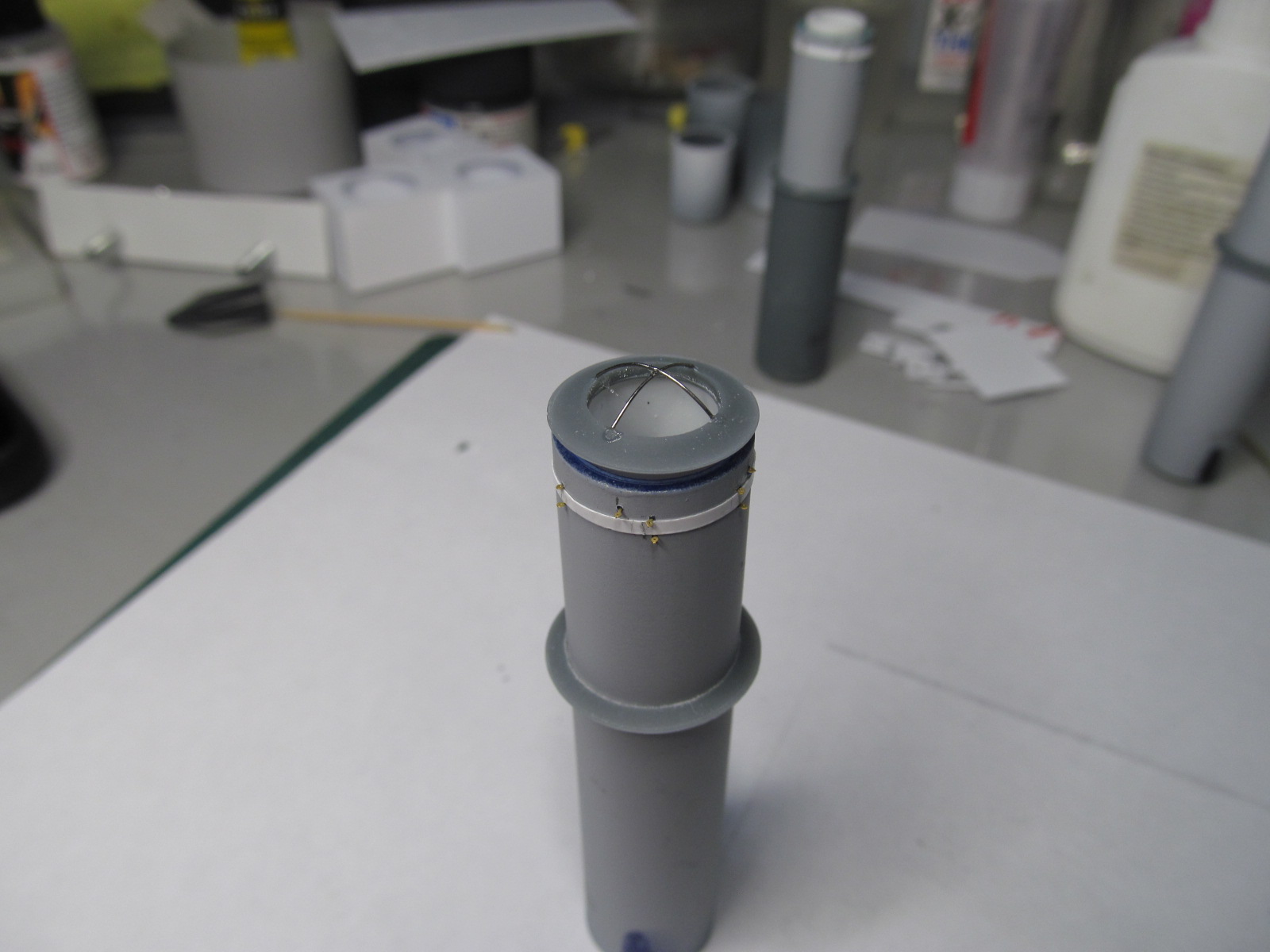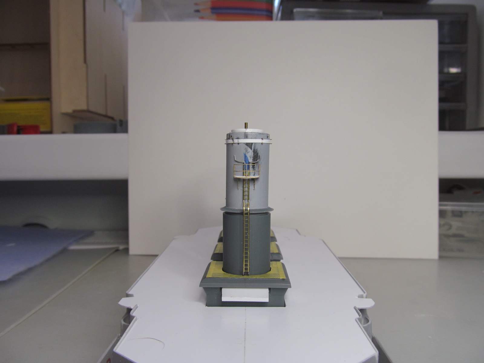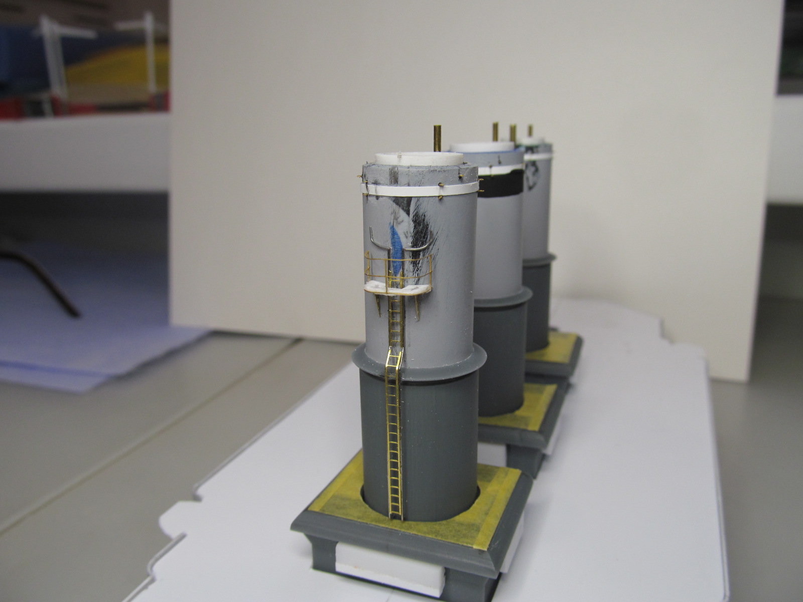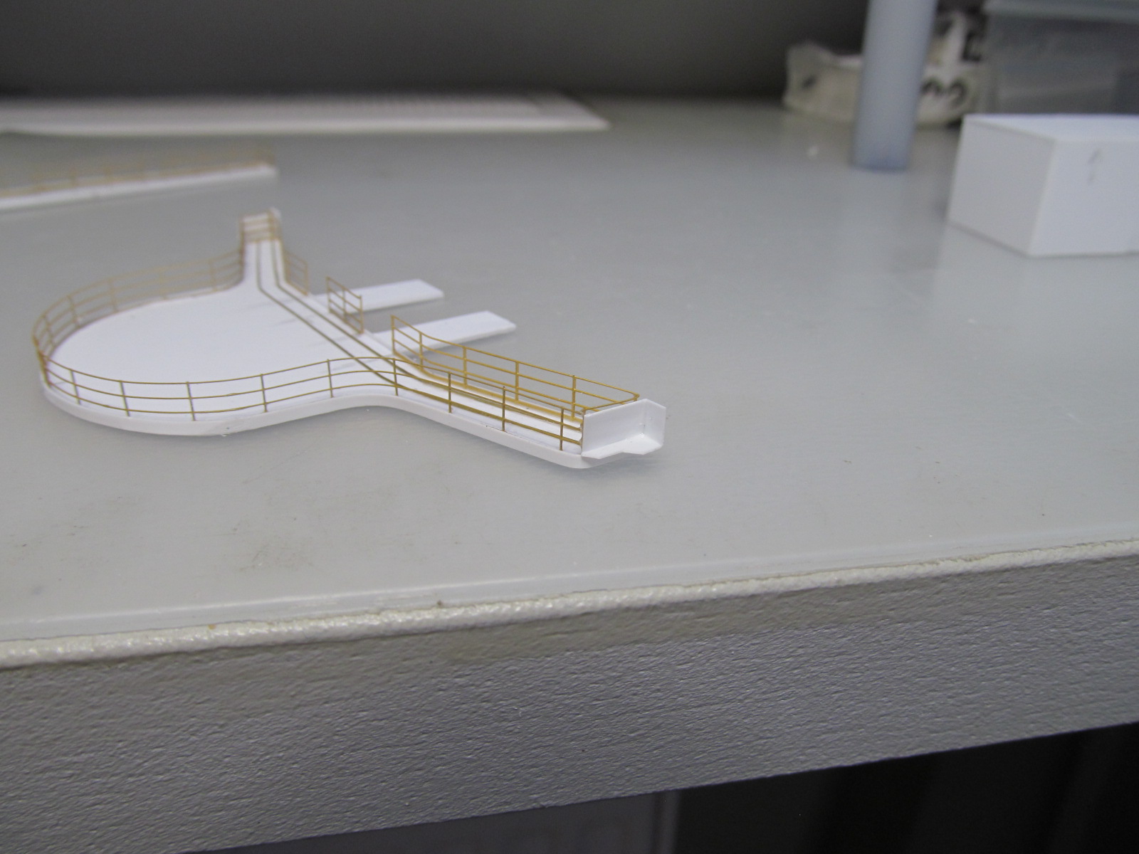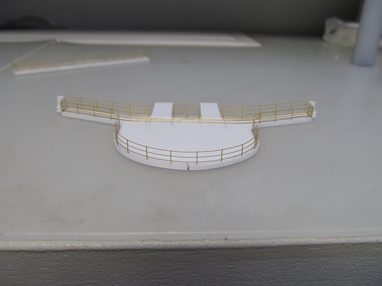 Стойки по периметру крыши боевой рубки - от Papermodeling. вот только дырочек для протяжки тросов в них практически не было, пришлось рассверливать.