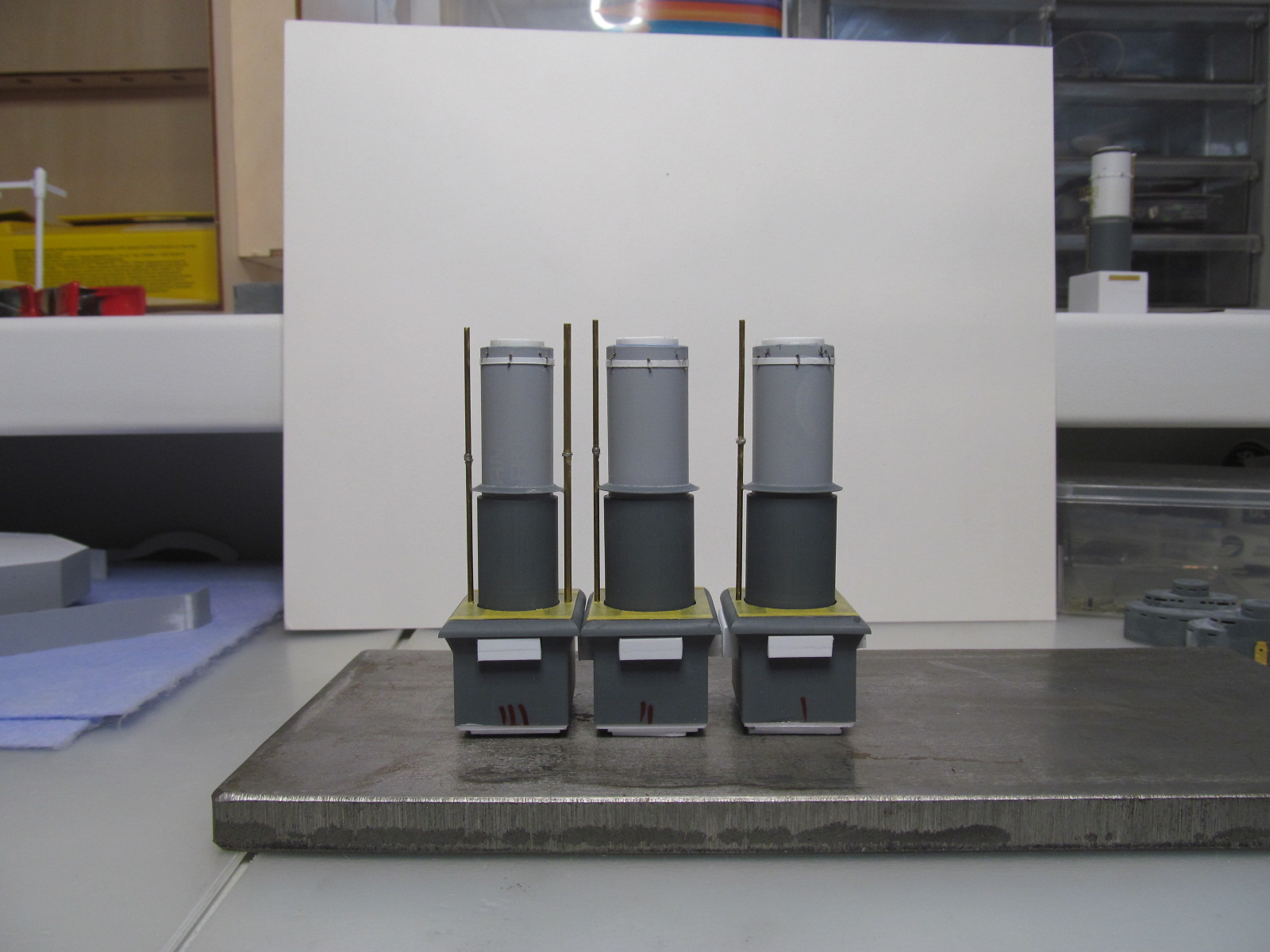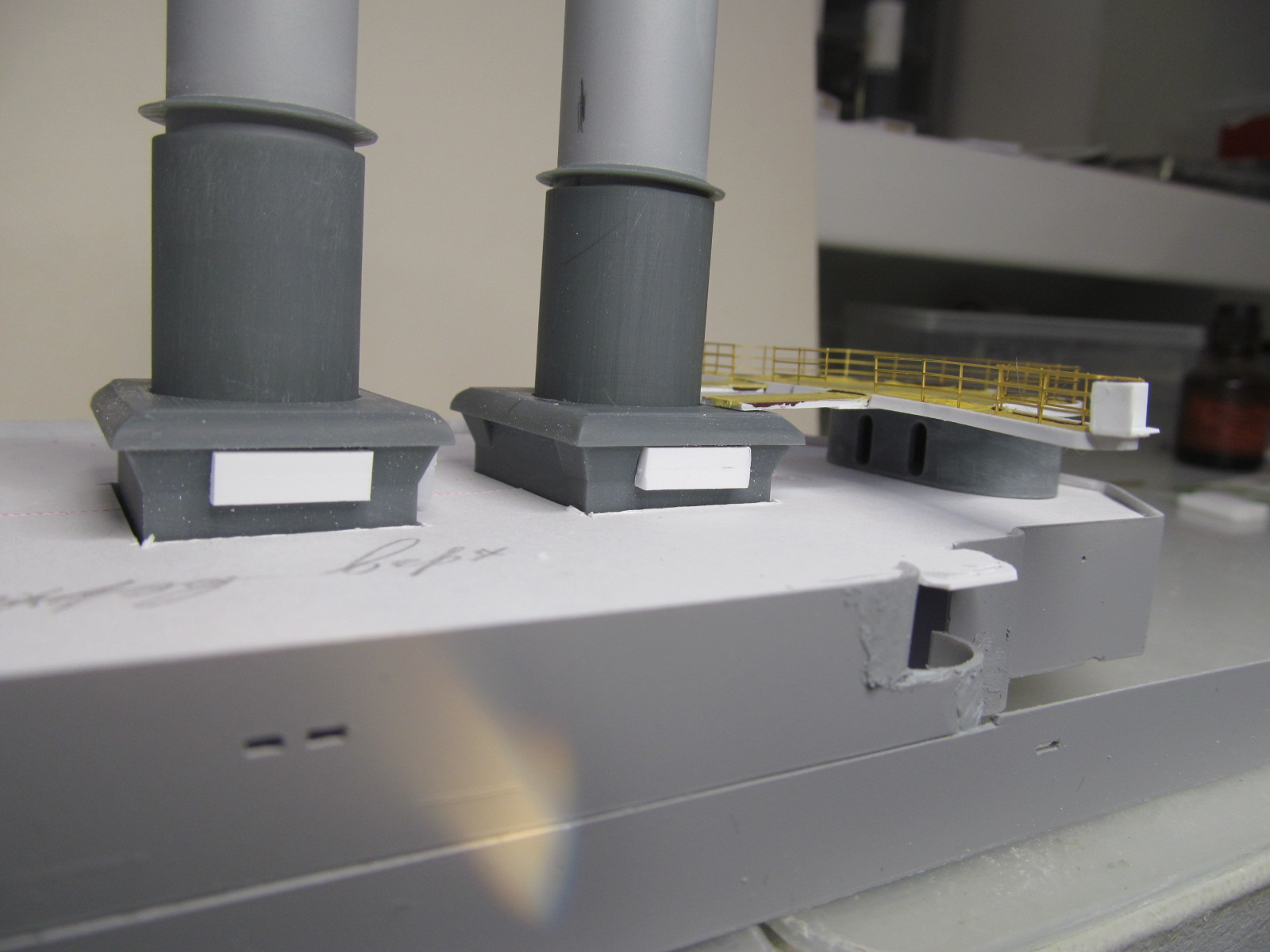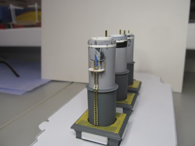 Продолжаю наращивать "мясо" на дымовые трубы и кожухи, но уже с креплением некоторых элементов "намертво".