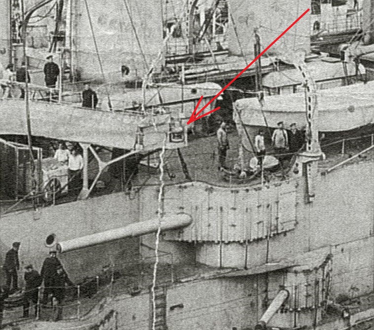 Естественно, всё обустройство дымовых труб пришлось брать только с фотографий, но различия с "Евстафием" очень даже заметны.
