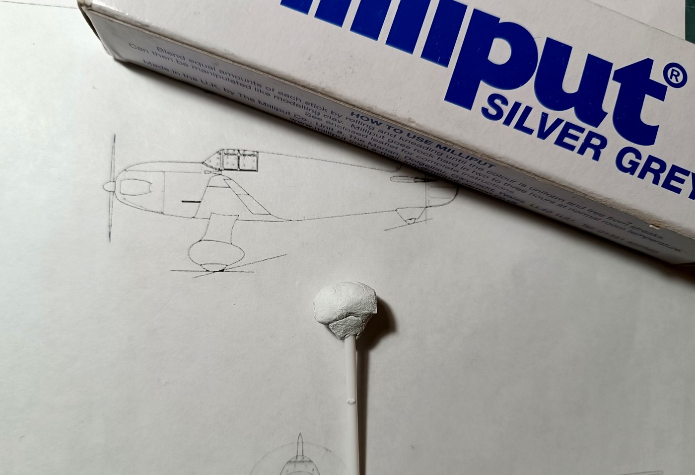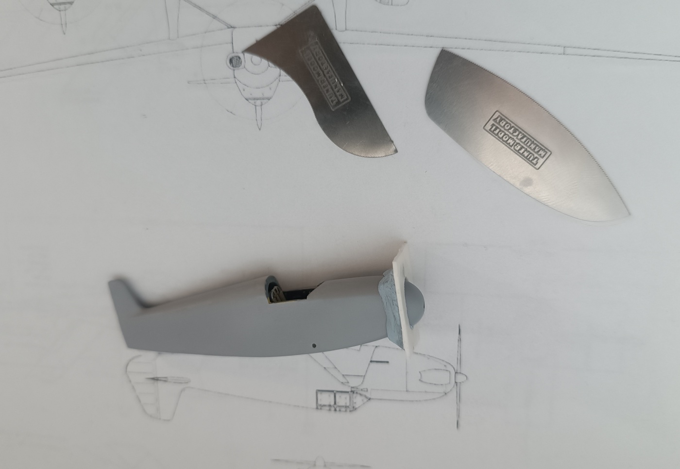 Из куска литника начал формировать гаргот, далее выведу двухкомпонентной тамией... ей же скорректировал капот(оказался уже корпуса)