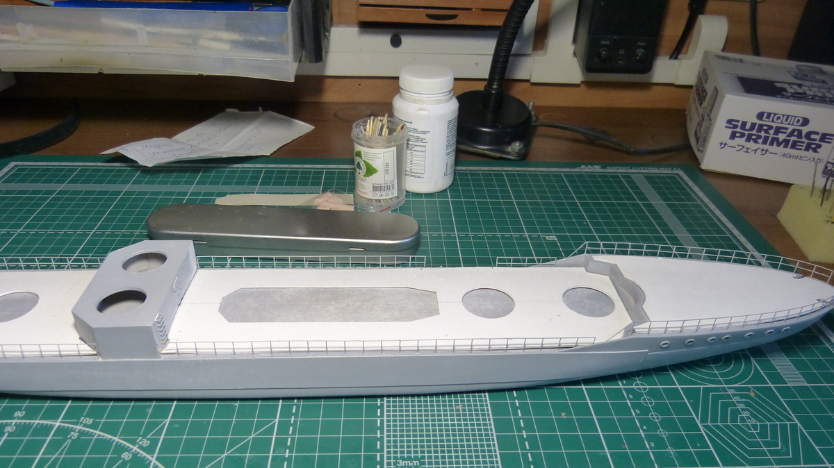Всем привет !!! Полтора месяца провалялся в больнице,теперь неспеша можно продолжить.Переделал надстройку кормовых башен и окончательно подогнал палубы