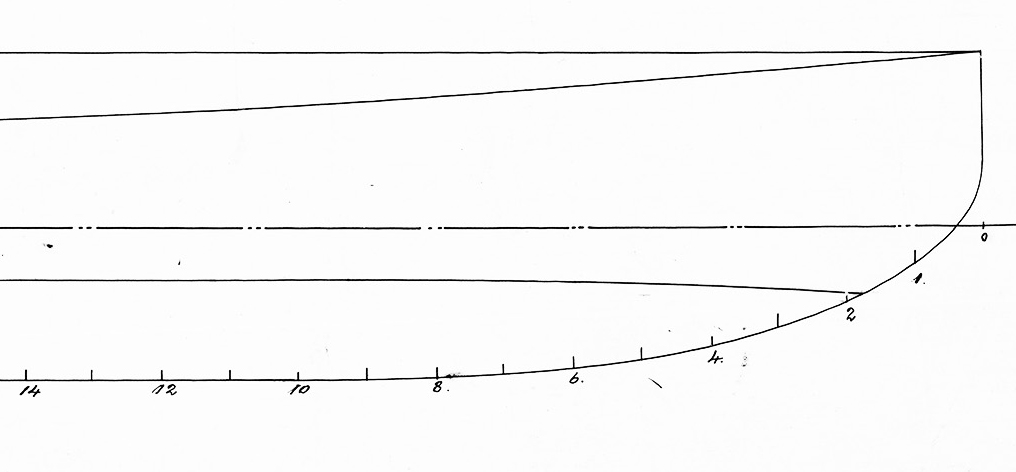 Вы, по ходу не поняли. От главного пояса брони идёт полоска. Как я понимаю имитация брони. Так вот. Нижняя кромка "тонкого" пояса должна совпадать с нижней кромкой главного. А у носа уходить ещё ниже. Приблизительно на 300 мм. Да. На чертеже это не отражено
