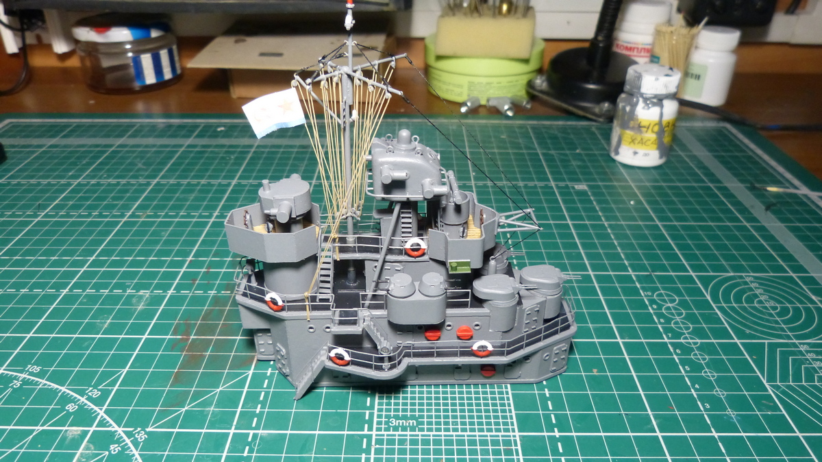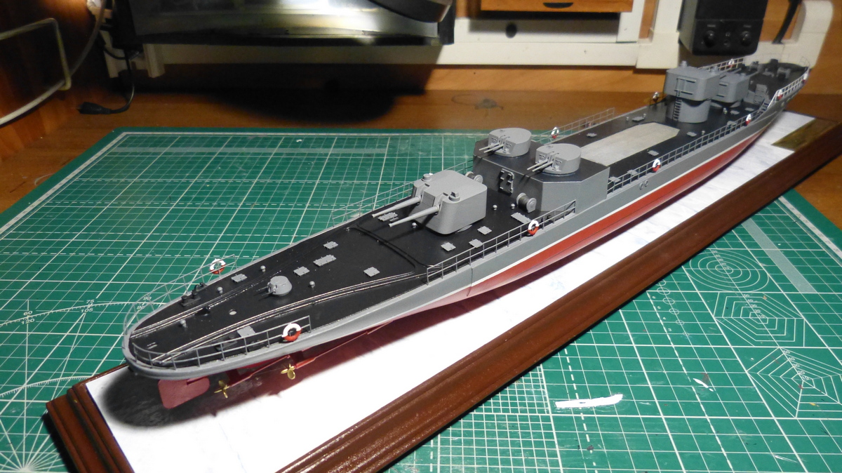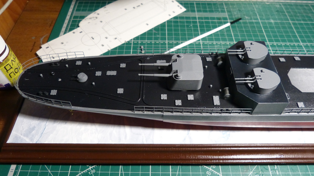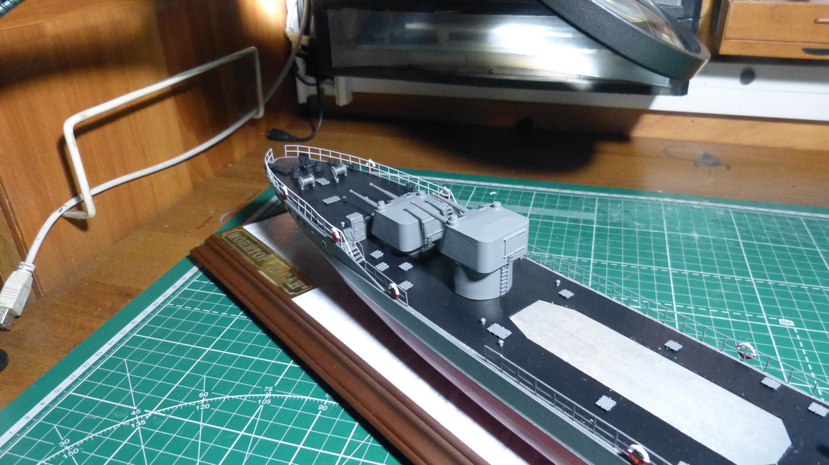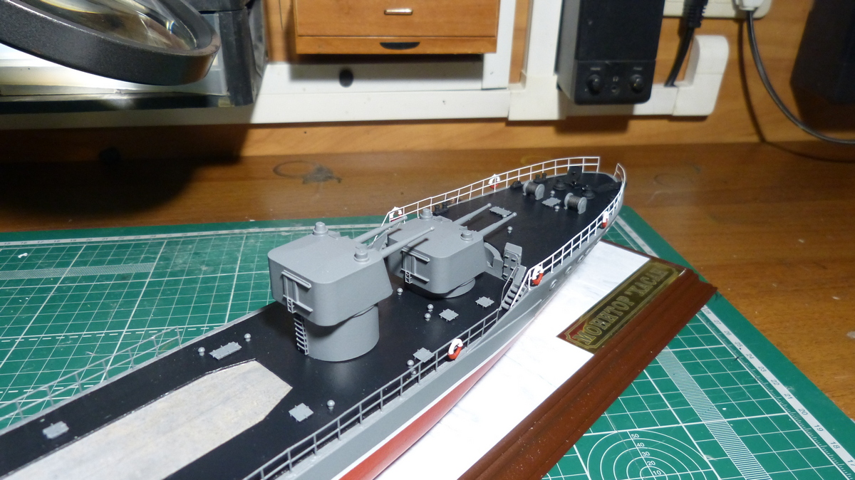 Ёлки-палки, тёзка - ну сколько же говорить - тем более в таком масштабе - на полубаке и шкафуте не сварные там леера, а трос на стойках. Срочно тонируй тёмно-серым между стойками!!! И не хватает Очень-Очень много деталей. Надеюсь, добавишь.