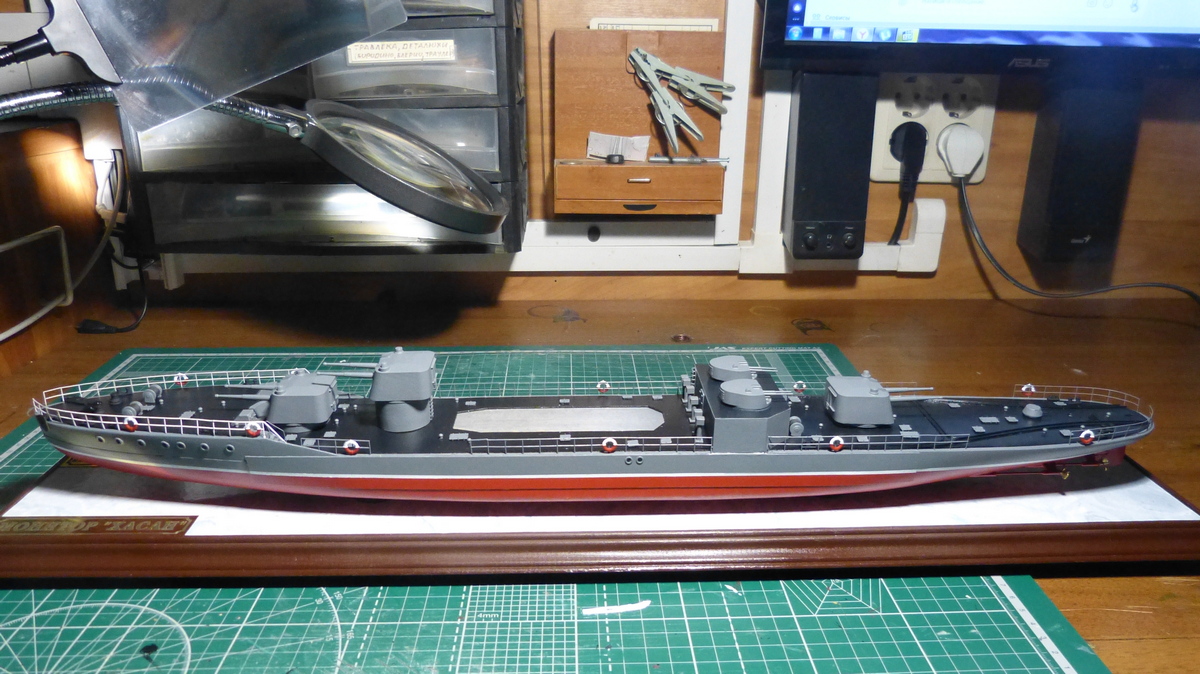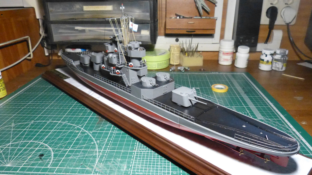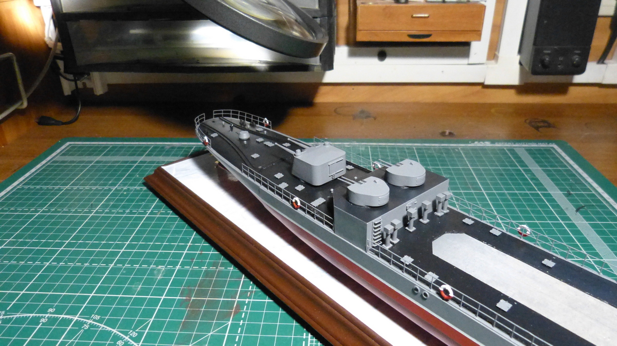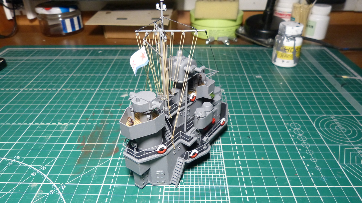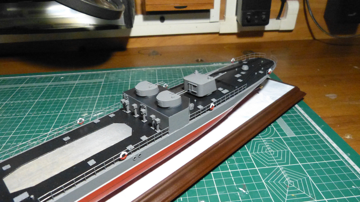 Ёлки-палки, тёзка - ну сколько же говорить - тем более в таком масштабе - на полубаке и шкафуте не сварные там леера, а трос на стойках. Срочно тонируй тёмно-серым между стойками!!! И не хватает Очень-Очень много деталей. Надеюсь, добавишь.